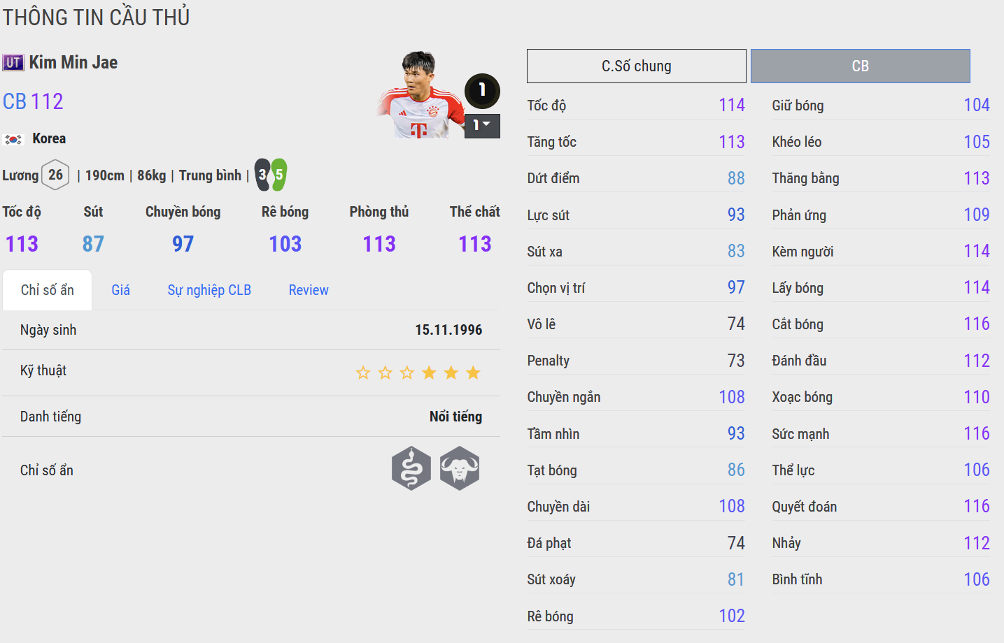Kim Min-jae là niềm tự hào của bóng đá Hàn Quốc và là một trong những trung vệ xuất sắc nhất châu Á đương đại, nổi bật nhờ thể hình vững chãi, sức mạnh tranh chấp và lối chơi điềm tĩnh, chắc chắn.