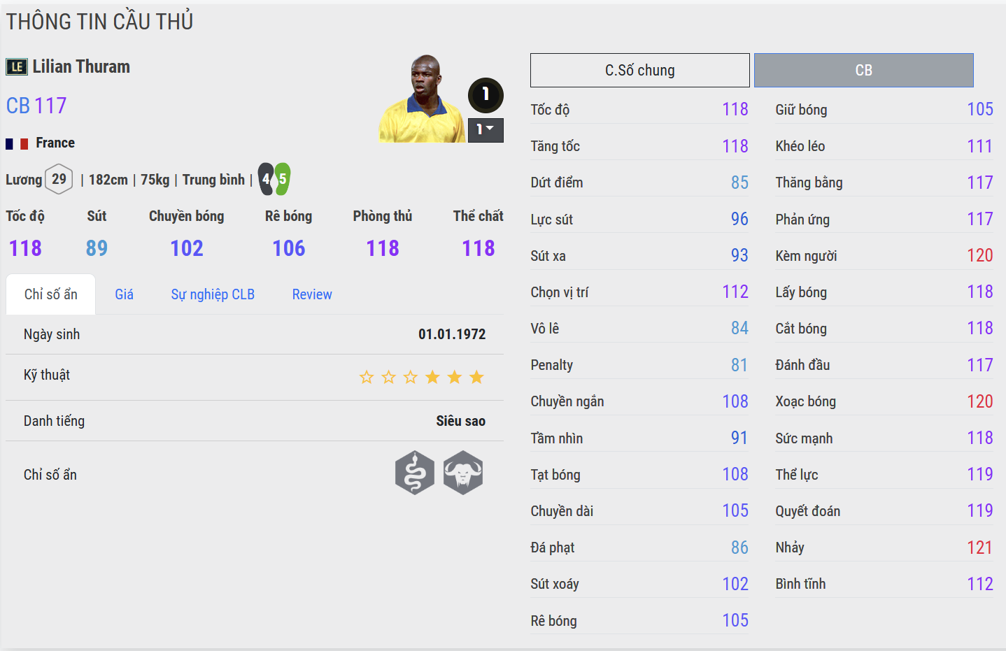 BDO là đỉnh cao của Thuram ở mức thẻ +8 trong FC Online: nhanh hơn, khỏe hơn, thông minh hơn và cực kỳ uy tín ở cả hai vị trí RB lẫn CB. Anh đọc tình huống xuất sắc, vào bóng dứt khoát nhưng sạch, xoay sở tốt ngay cả trong thế bị áp lực và rất khó bị vượt qua trong các pha 1v1. Đây là phiên bản tái hiện trọn vẹn nhất tinh thần “lá chắn thép” – sự kết hợp hoàn hảo giữa thể chất, AI, kỹ năng phòng ngự của huyền thoại phòng ngự người Pháp.