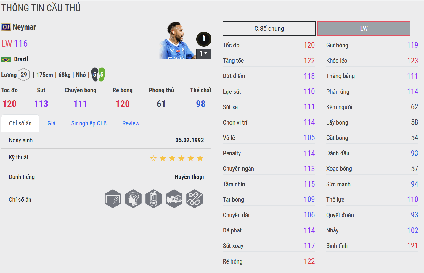 Trong FC Online, Neymar được đánh giá là một chân chạy cánh cực kì tiềm năng khi sở hữu kỹ thuật nổi trội, tốc độ tốt cùng khả năng dứt điểm đa dạng bằng cả 2 chân. Không chỉ có vậy, kỹ năng chuyền ấn tượng cũng giúp Neymar trở thành quân bài được nhiều HLV lựa chọn.