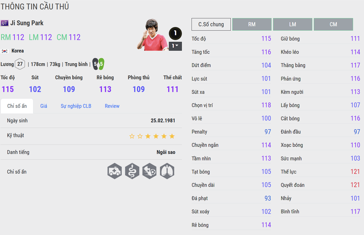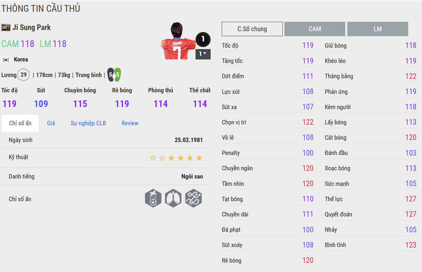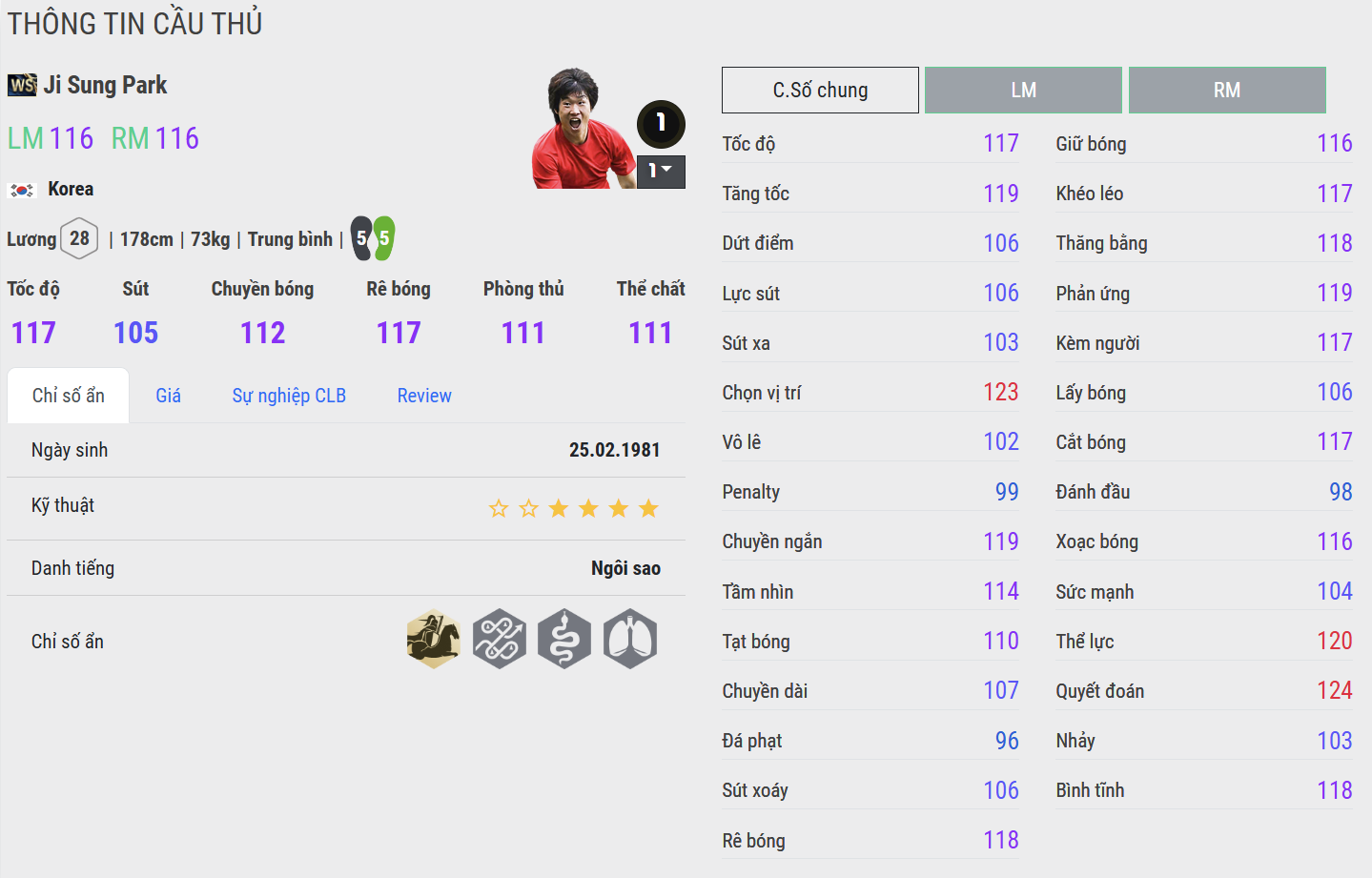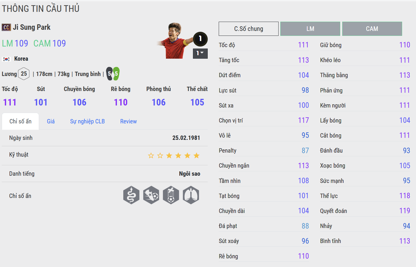 Park Ji-sung là biểu tượng của tinh thần chiến đấu và sự bền bỉ không mệt mỏi trong bóng đá châu Á. Được mệnh danh là “Máy chạy Hàn Quốc”, anh nổi bật nhờ khả năng di chuyển liên tục, sức chịu đựng phi thường và khả năng bao quát sân cực tốt, khiến bất kỳ tuyến giữa hay hàng công nào cũng khó lòng kiểm soát.