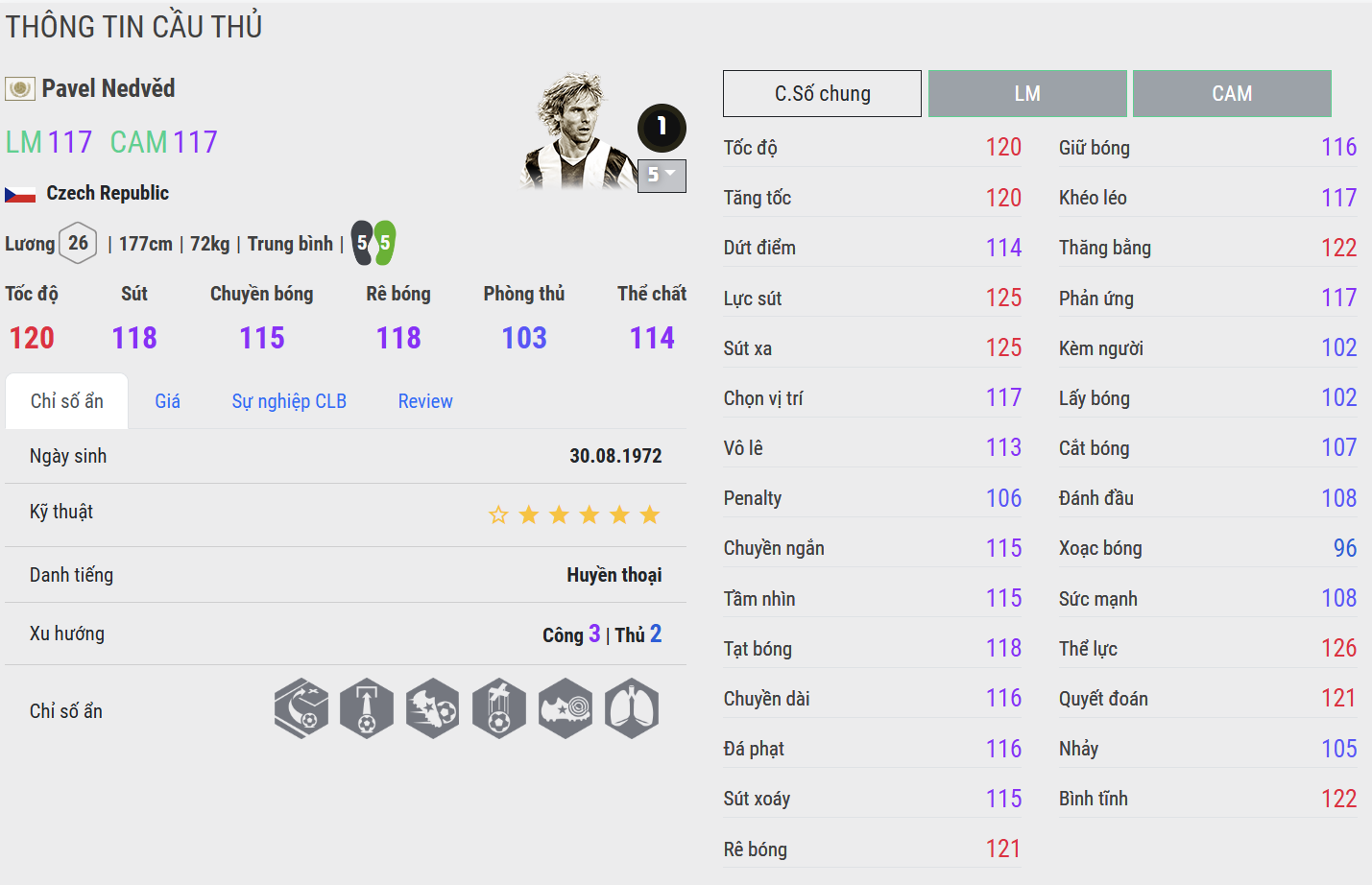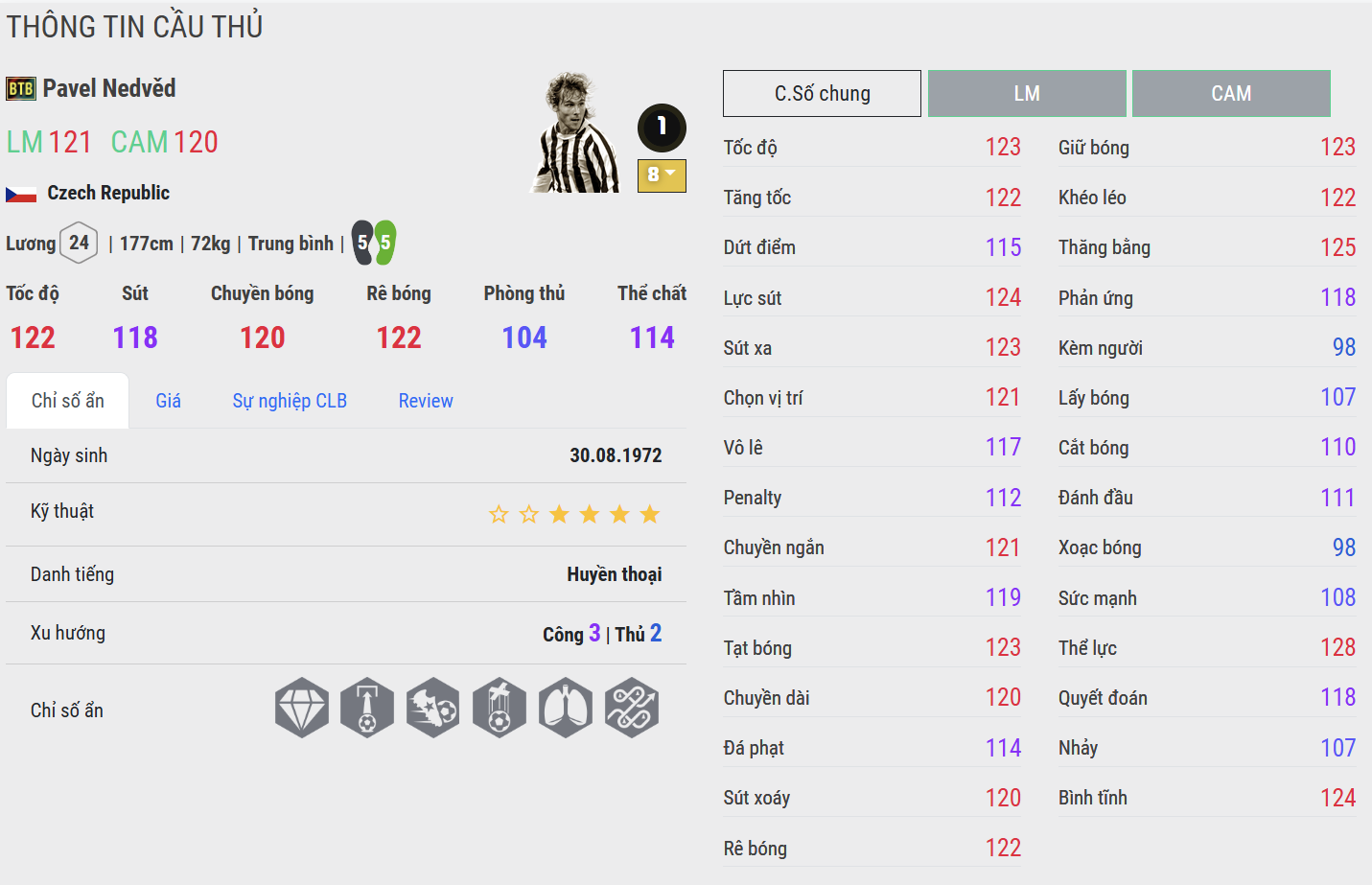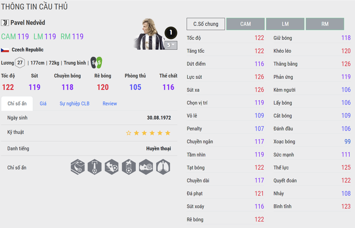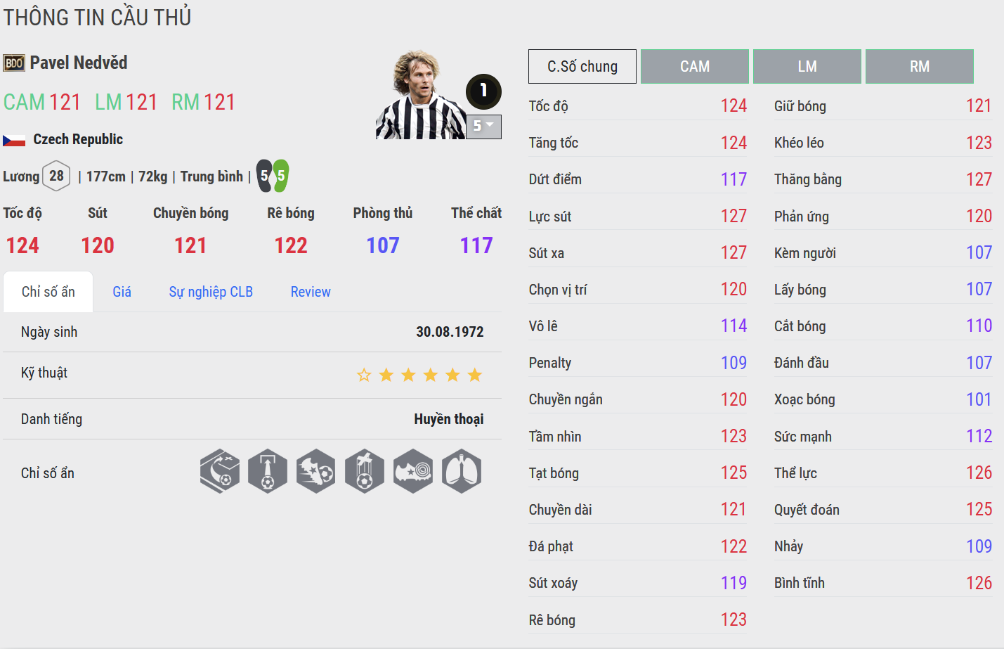 Pavel Nedved được đánh giá là một trong những tiền vệ cánh toàn diện của FC Online. Anh được xem là cái tên không thể thiếu trong team color Juventus và có thể đá tốt từ LM, RM cho đến CAM.