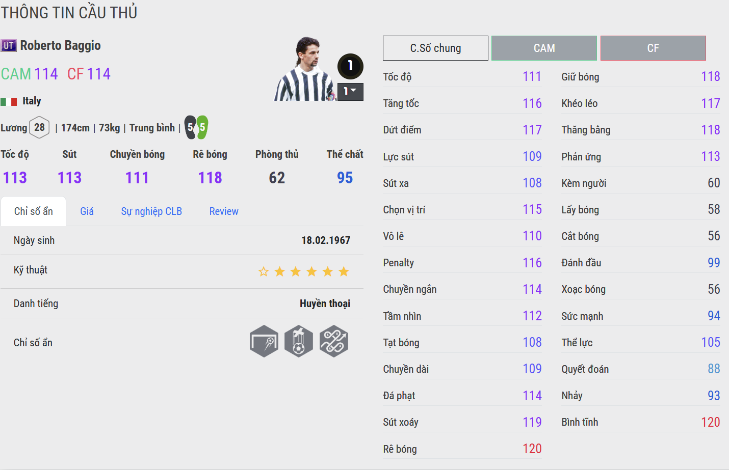 Anh là hiện thân của mẫu cầu thủ số 10 cổ điển: sáng tạo, thông minh và đầy cảm hứng, có khả năng xoay chuyển cục diện trận đấu chỉ bằng một pha xử lý duy nhất. Sự nghiệp của Baggio trải dài qua Fiorentina, Juventus, AC Milan, Bologna và Inter Milan, nơi anh luôn để lại dấu ấn bằng những bàn thắng và kiến tạo kinh điển.