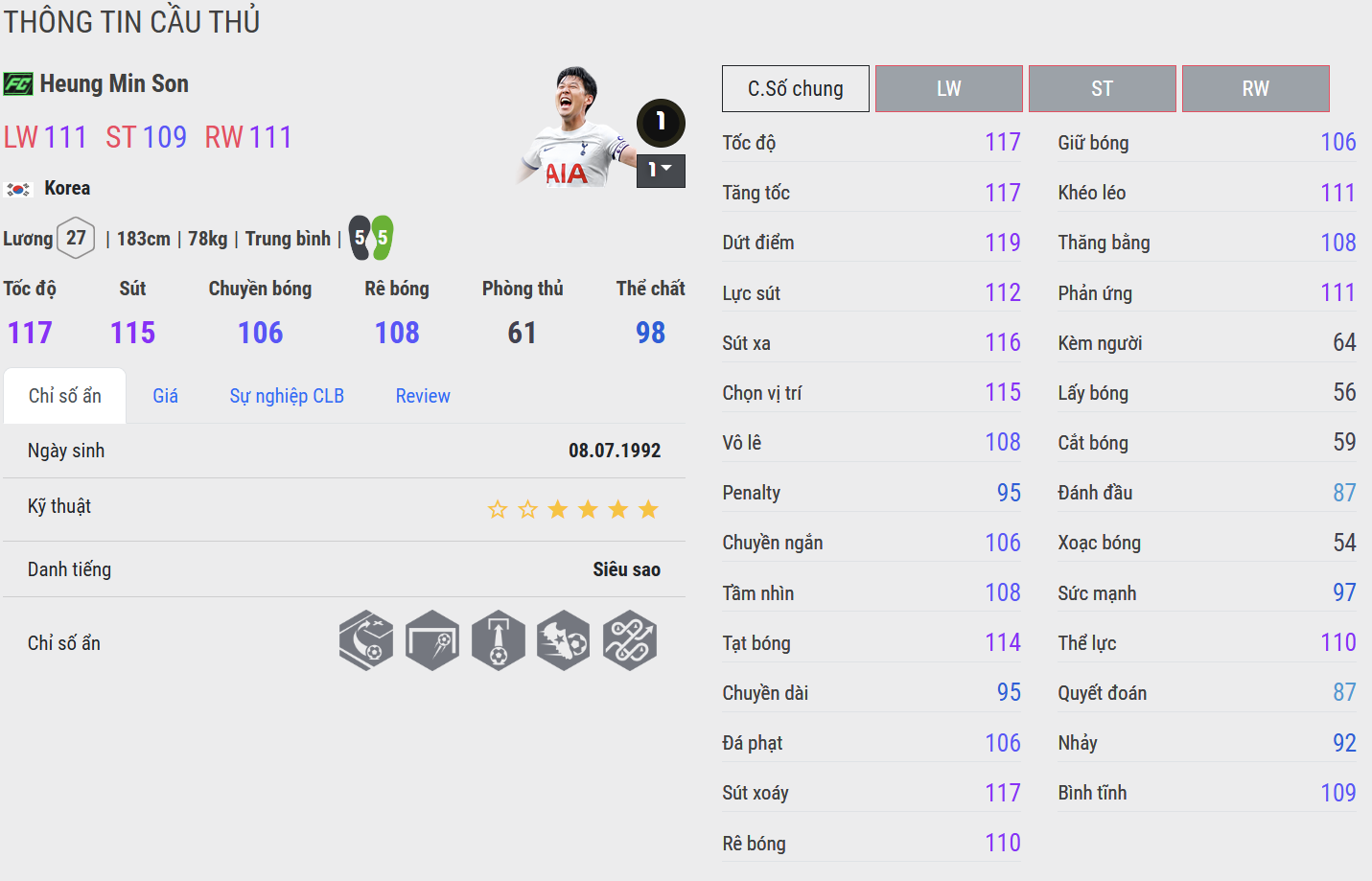 Son Heung-min là ngôi sao bóng đá hàng đầu châu Á và là một trong những cầu thủ tấn công xuất sắc nhất thế giới. Sinh năm 1992 tại Hàn Quốc, Son nổi bật với tốc độ, kỹ thuật và khả năng dứt điểm đa dạng bằng cả hai chân.