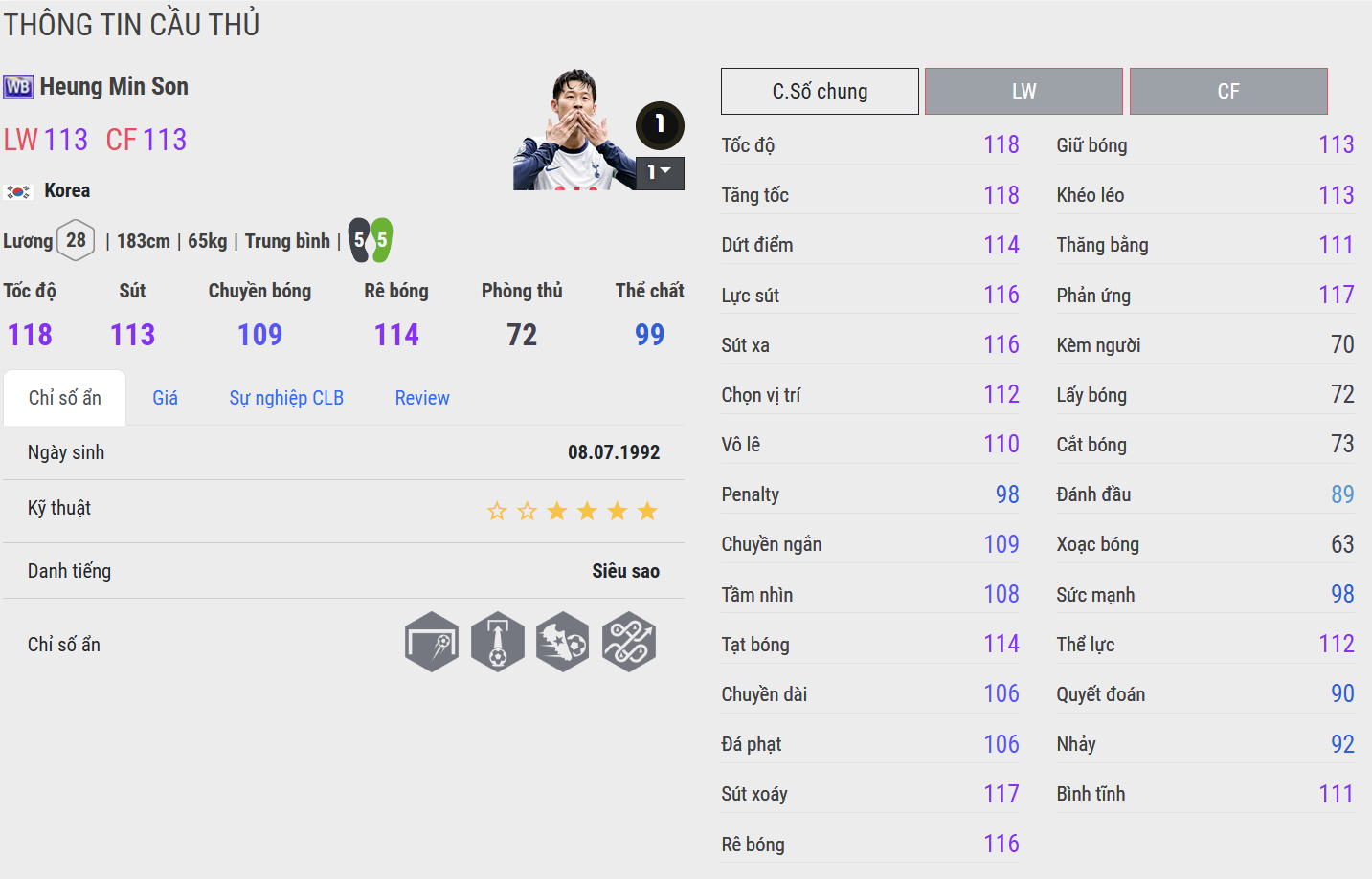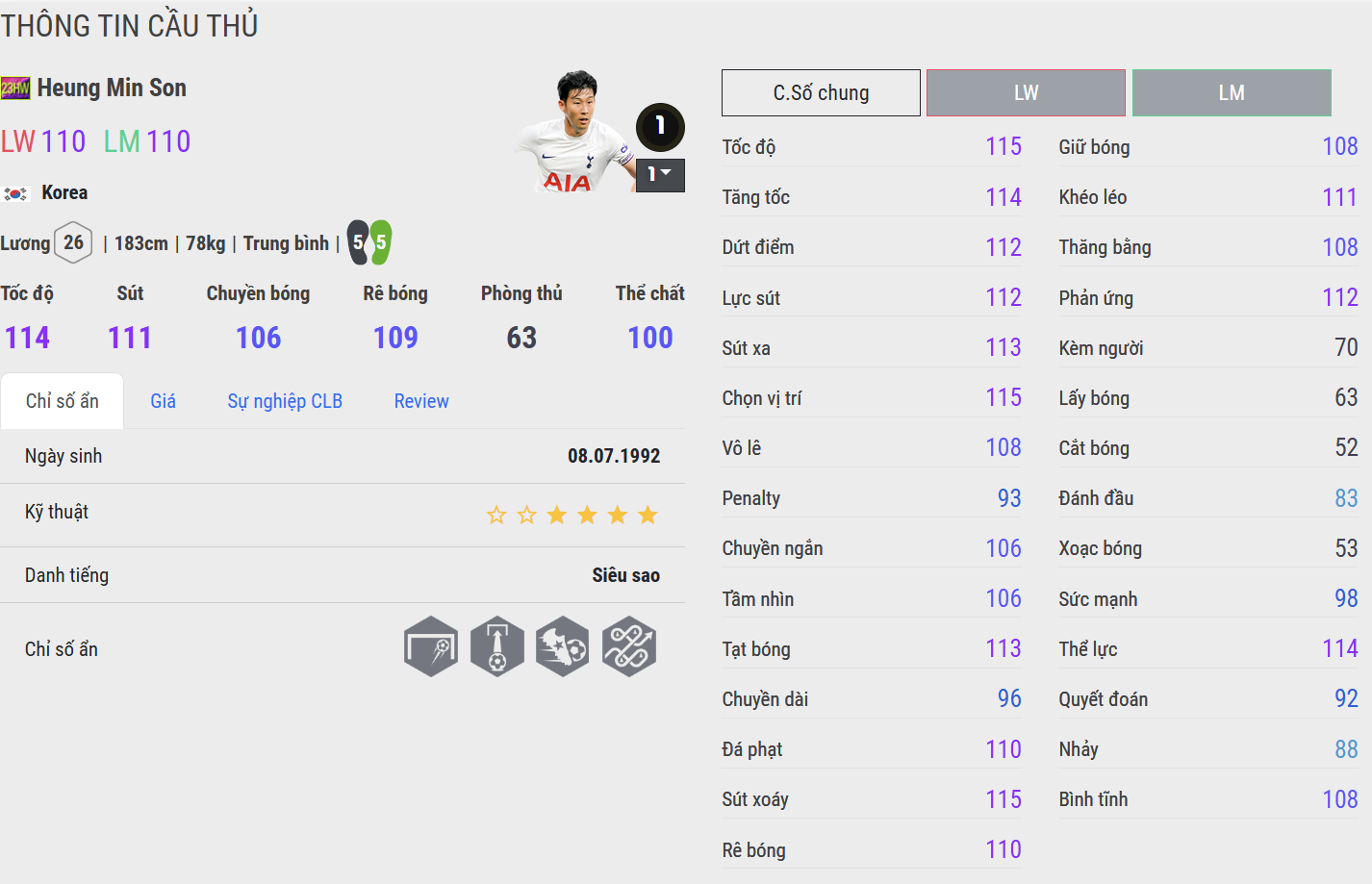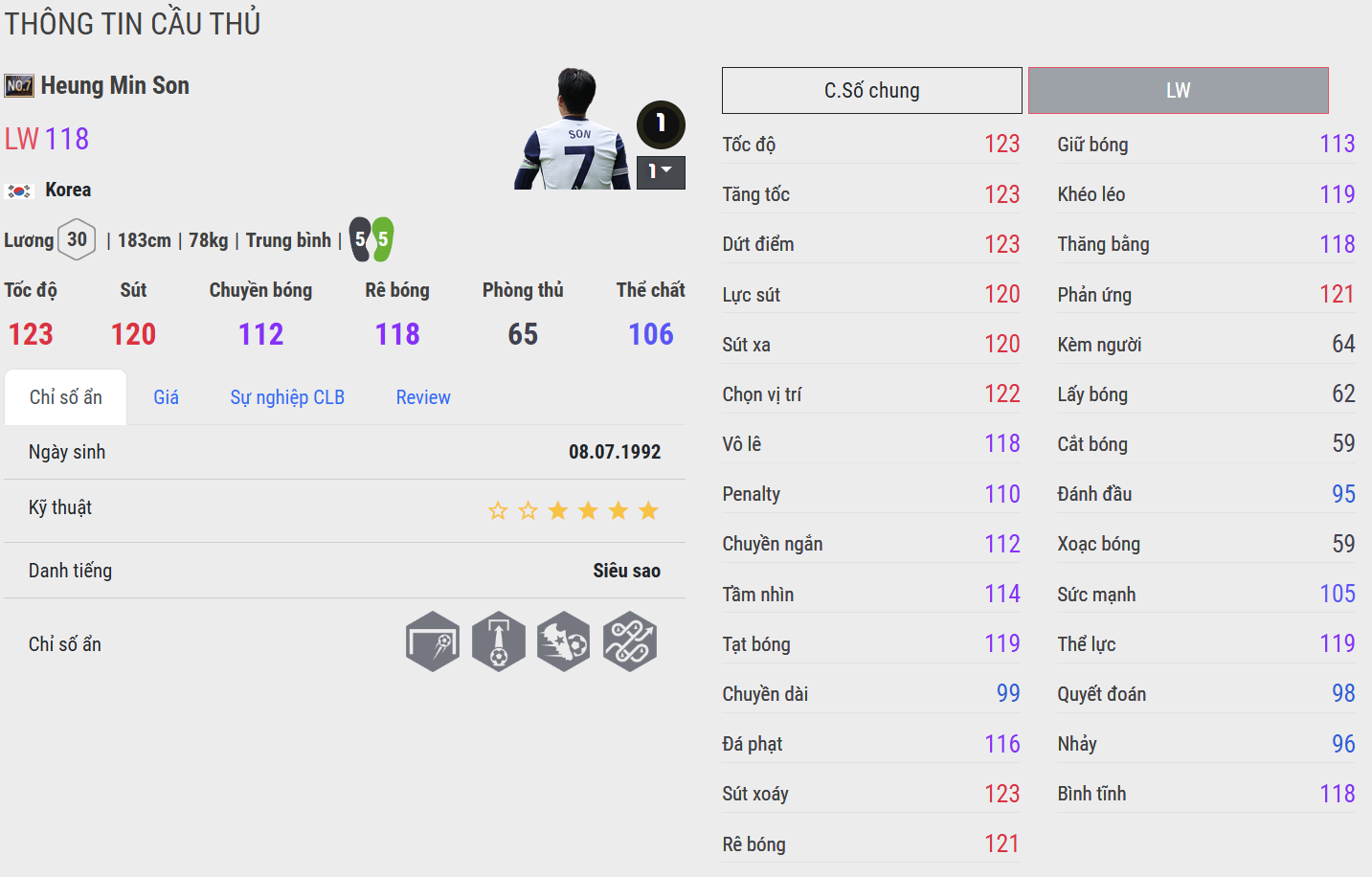 Son Heung-min – niềm tự hào của bóng đá Hàn Quốc và châu Á, được xem là một trong những cầu thủ toàn diện nhất thế giới hiện nay. Với tốc độ bùng nổ, kỹ thuật khéo léo và khả năng dứt điểm bằng cả hai chân, Son luôn là mũi công nguy hiểm có thể tạo ra khác biệt ở bất kỳ trận đấu nào.
