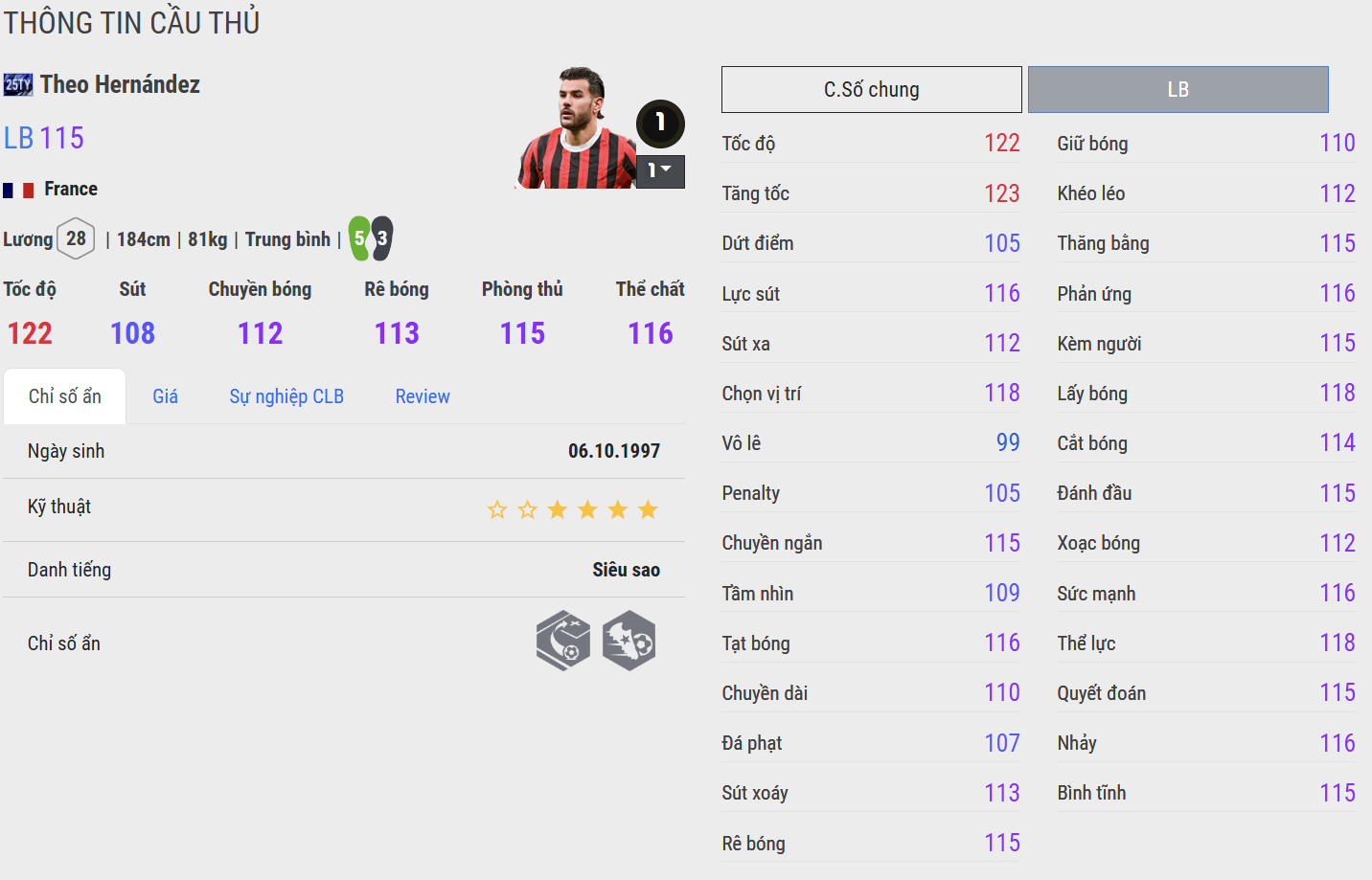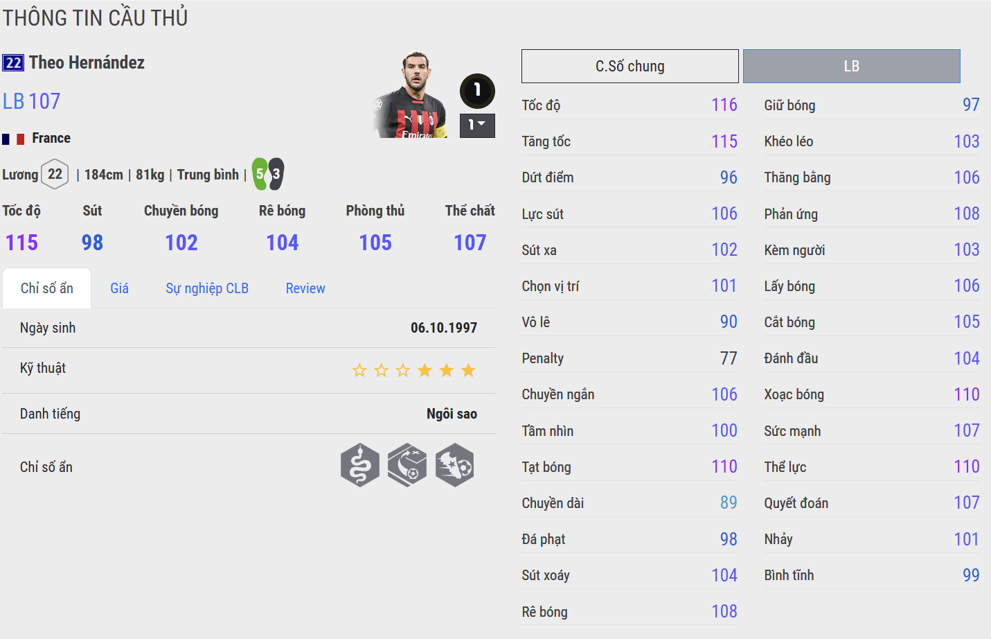 Thuộc nhóm hậu vệ biên có thiên hướng tấn công mạnh mẽ, Theo Hernandez mang đến sự bùng nổ ở hành lang trái nhờ tốc độ vượt trội, khả năng dốc bóng dũng mãnh và những pha cắt vào trung lộ đầy uy lực.