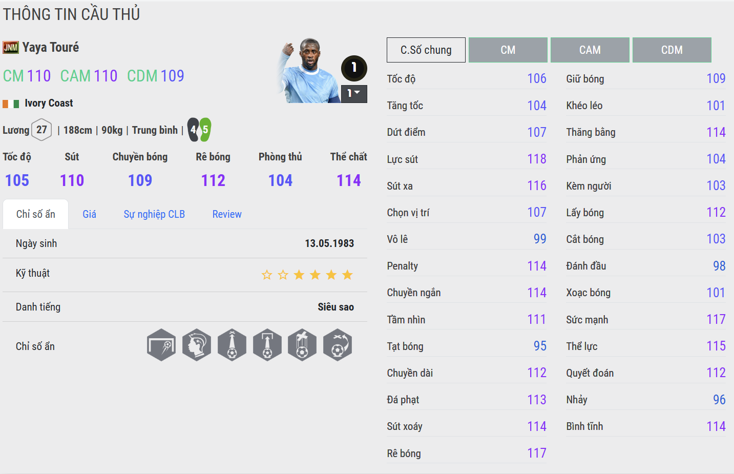 Trong màu áo The Citizens, Yaya Touré trở thành biểu tượng nơi tuyến giữa nhờ thể hình mạnh mẽ, khả năng cầm nhịp, những pha bứt tốc dũng mãnh cùng những cú sút xa uy lực. Anh chính là nhân tố quan trọng giúp Man City lột xác, giành những danh hiệu Premier League đầu tiên trong kỷ nguyên mới.