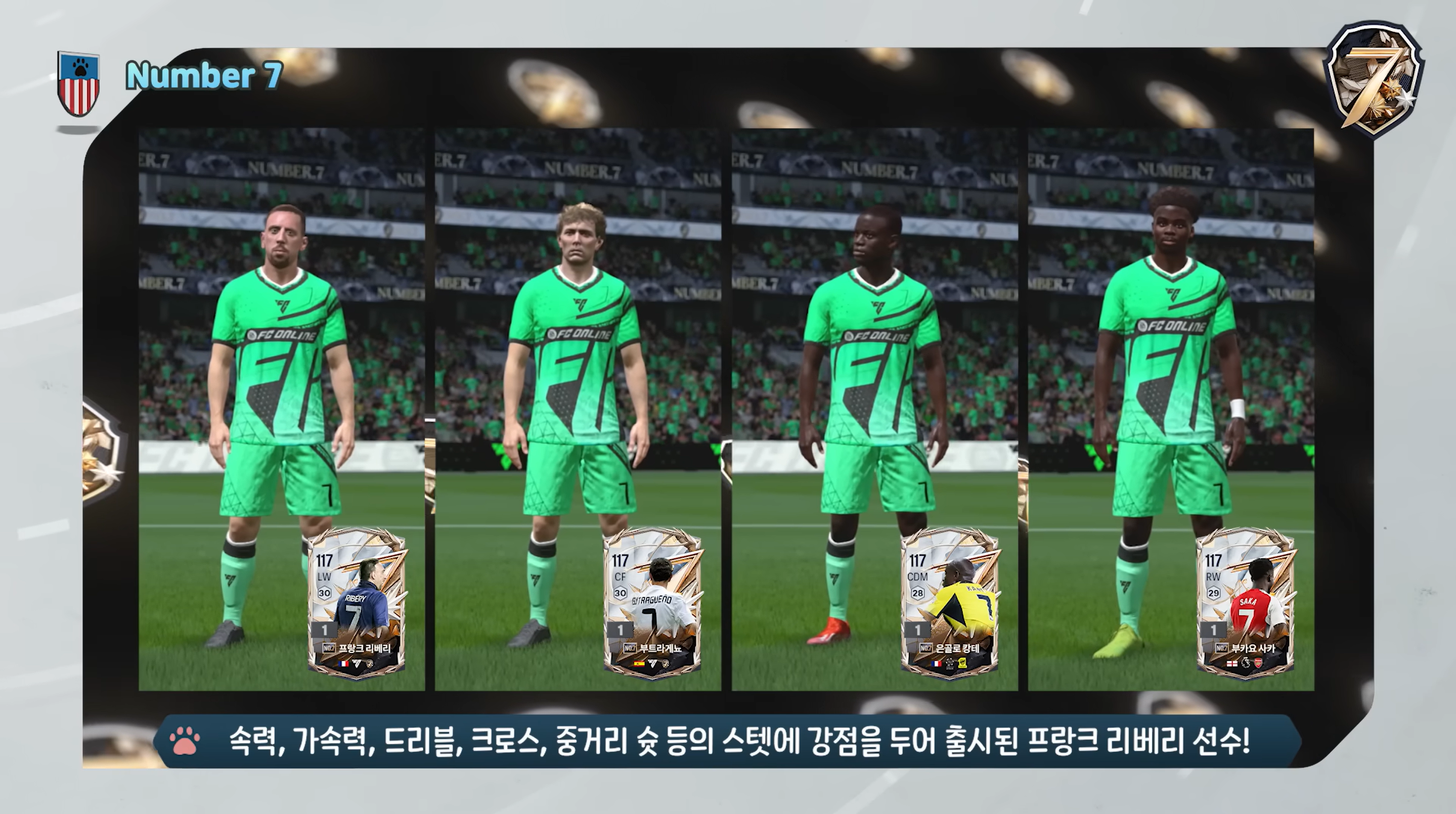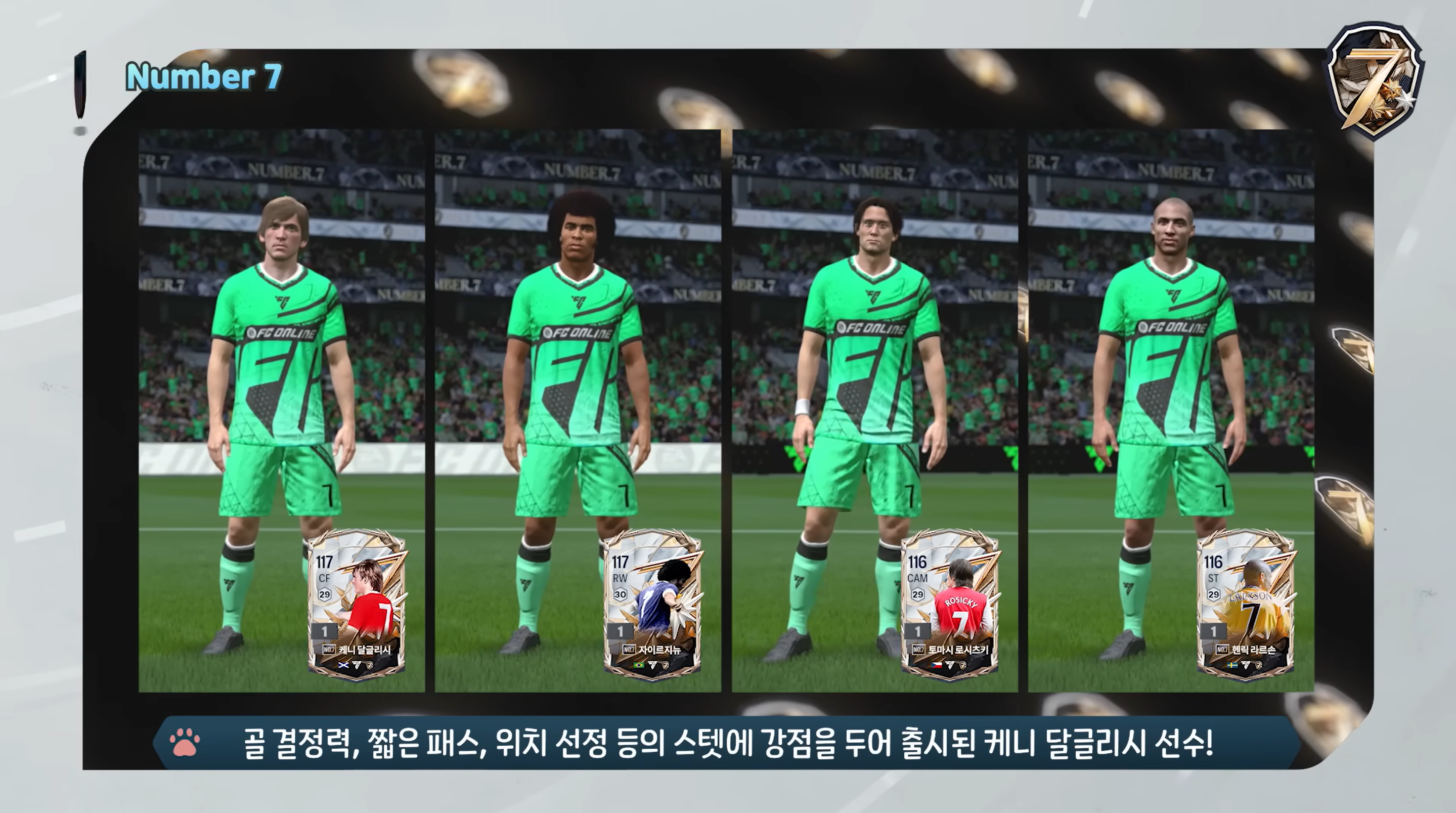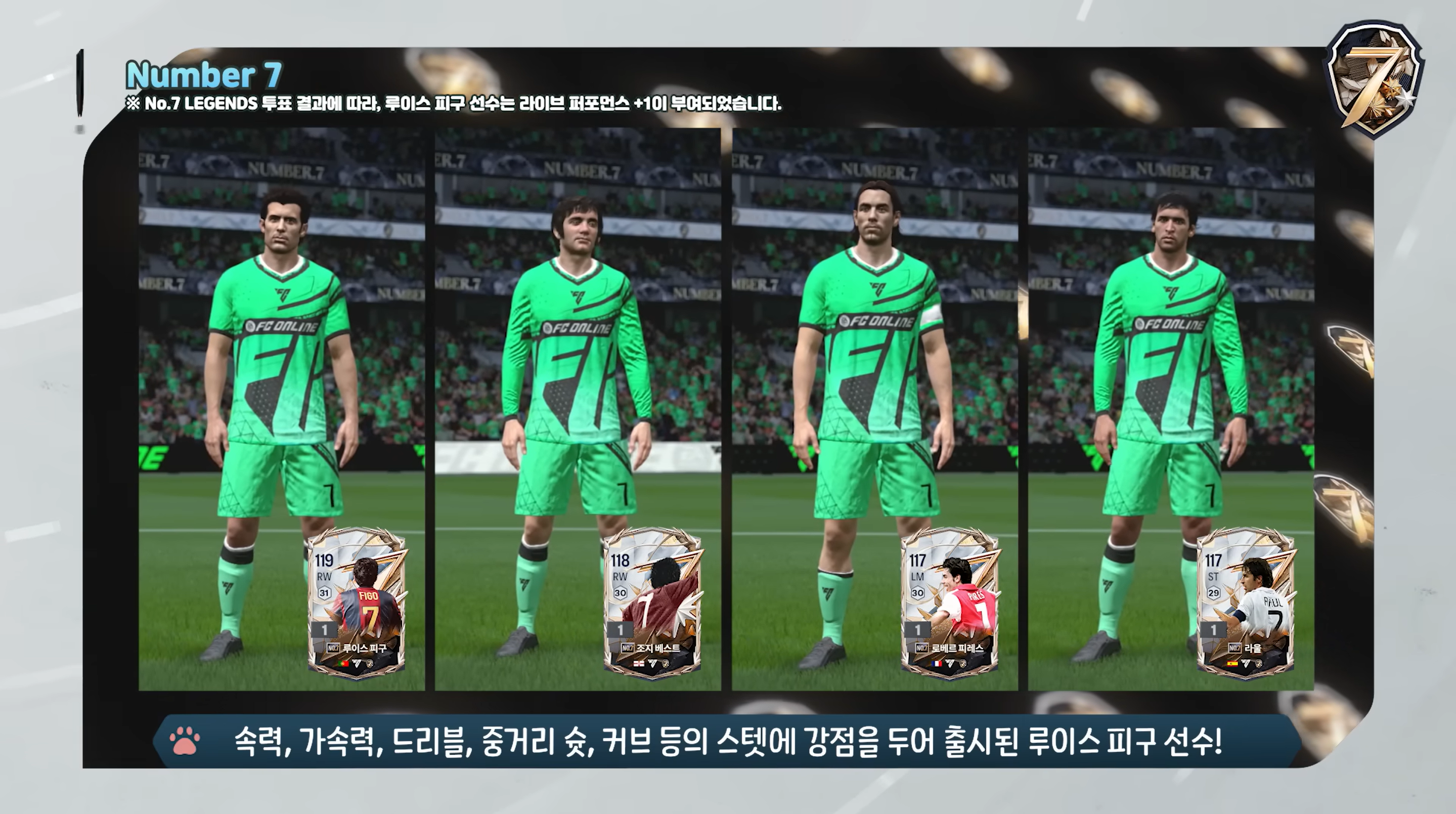 Mùa thẻ chính mà FC Online Hàn ra mắt chính là mùa thẻ Number 7. Đây là mùa thẻ tôn vinh những cầu thủ xuất sắc trong mặc áo số 7 huyền thoại, một trong những số áo mà nhiều cầu thủ tấn công luôn ao ước sở hữu.