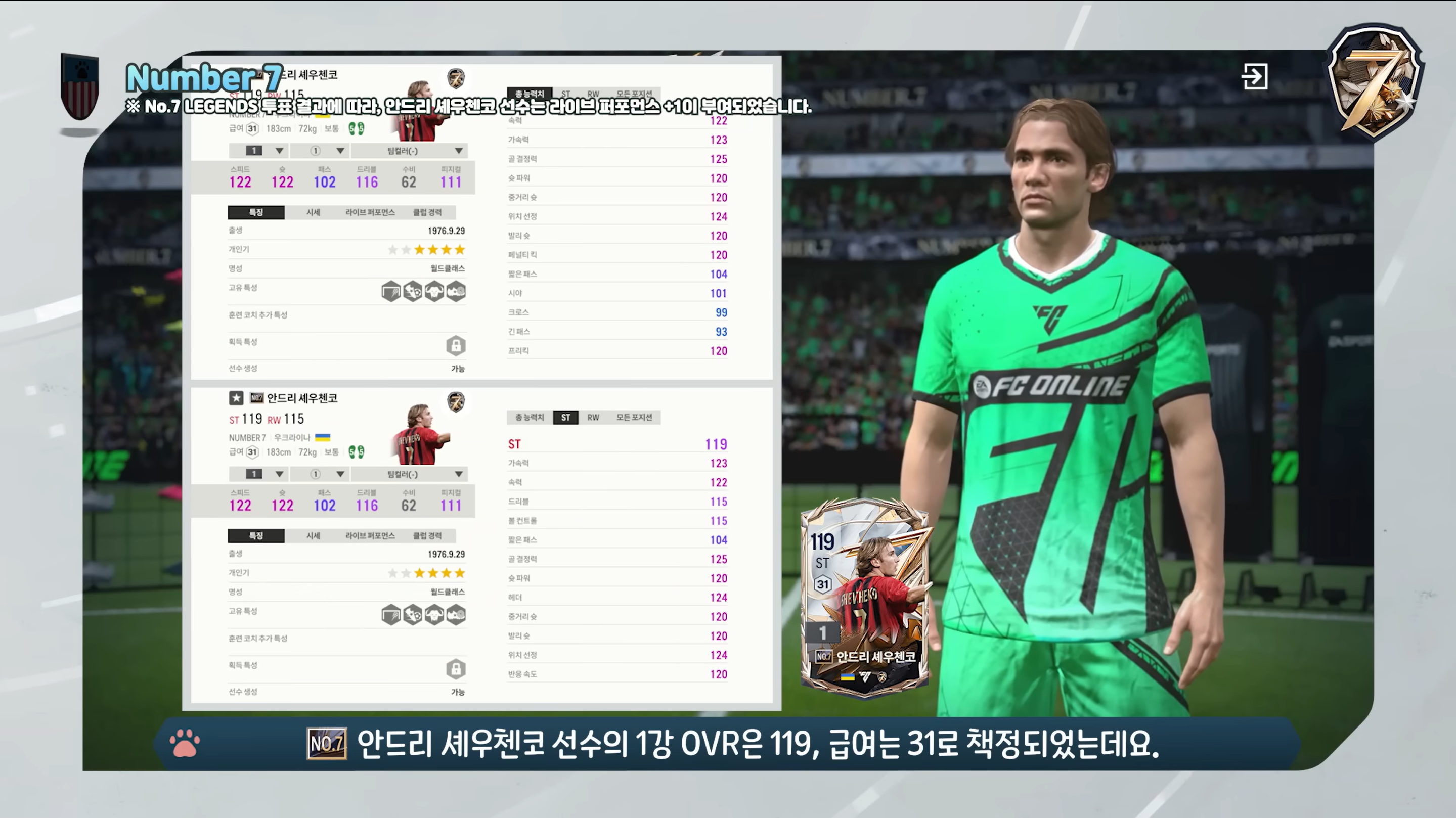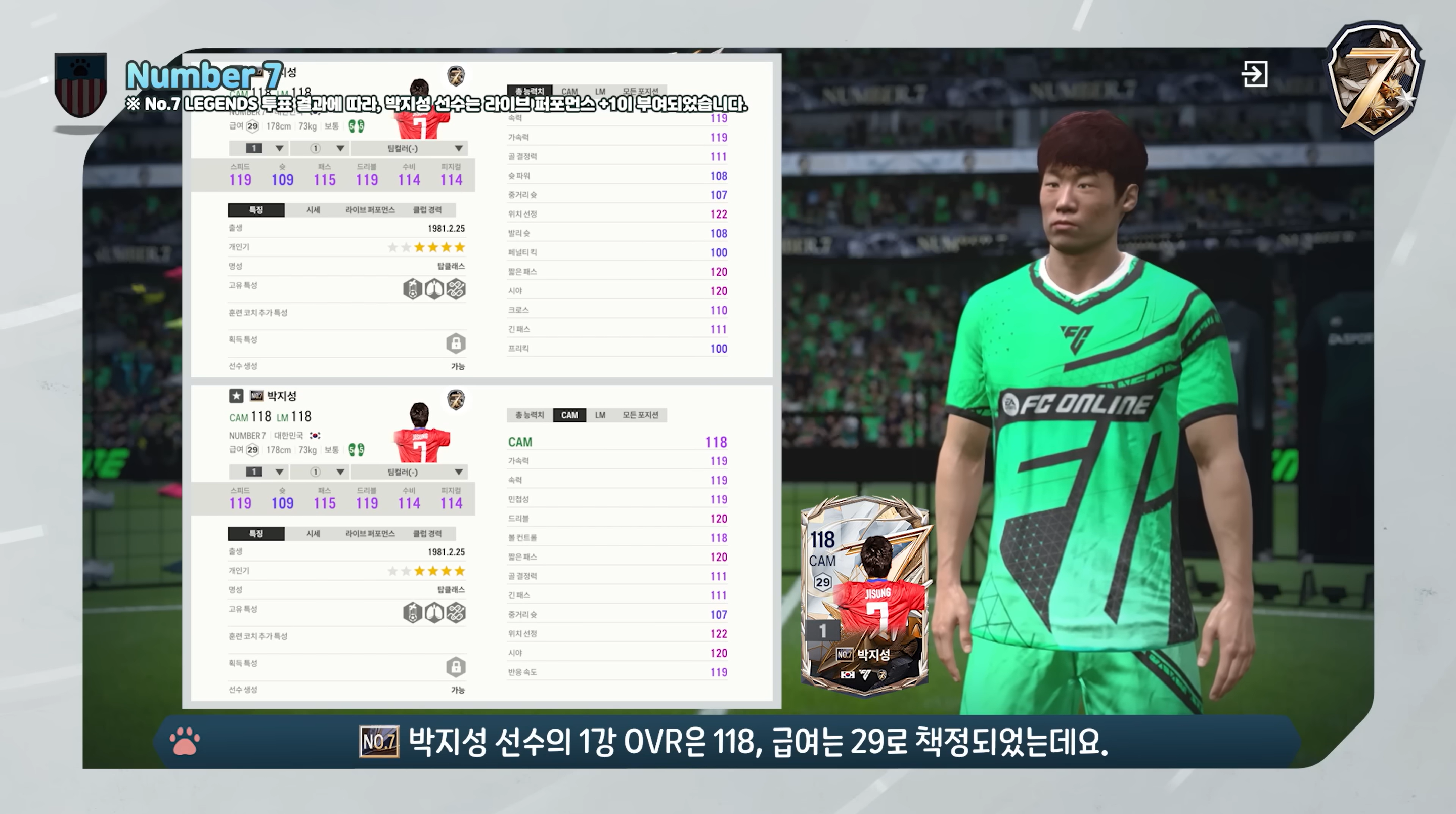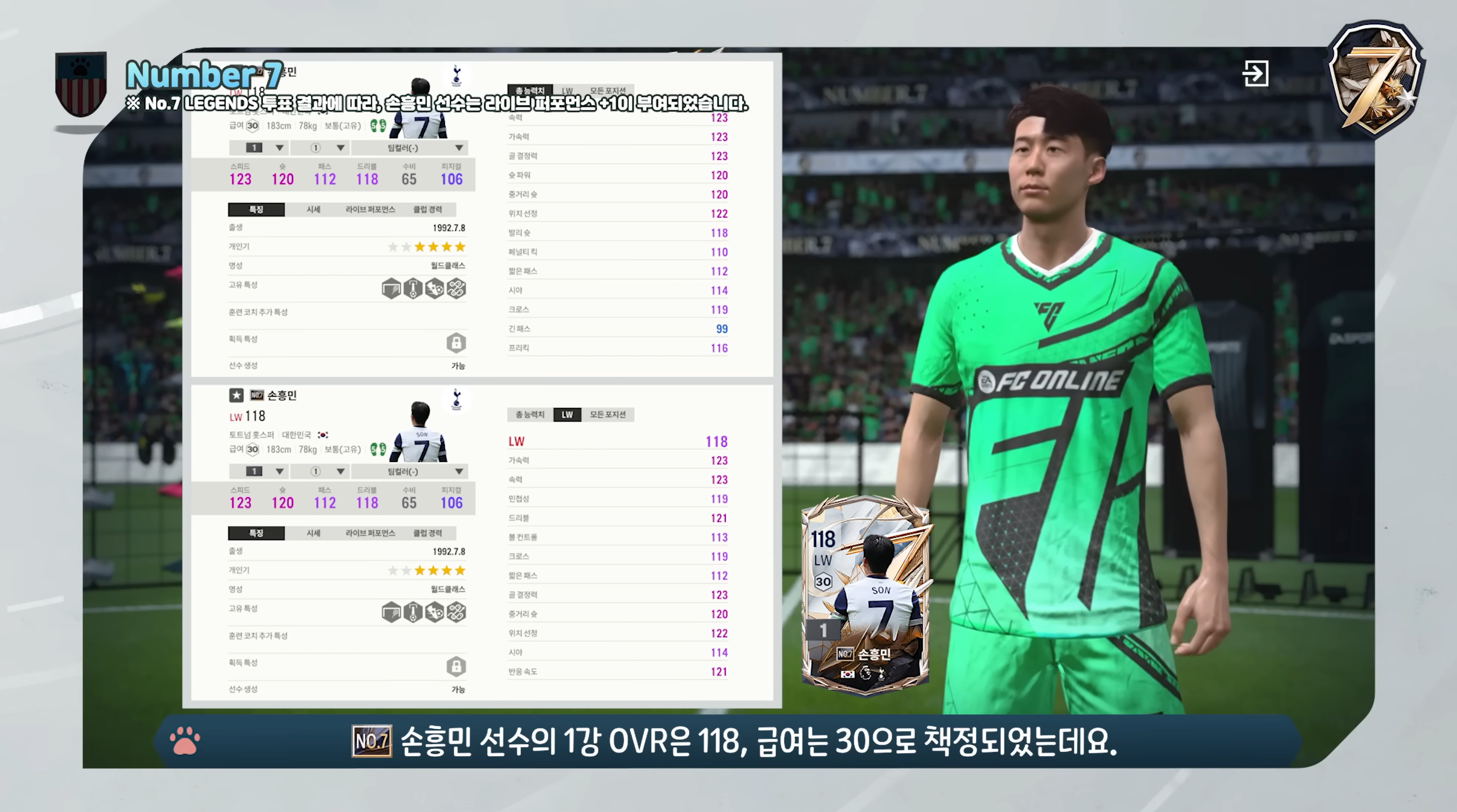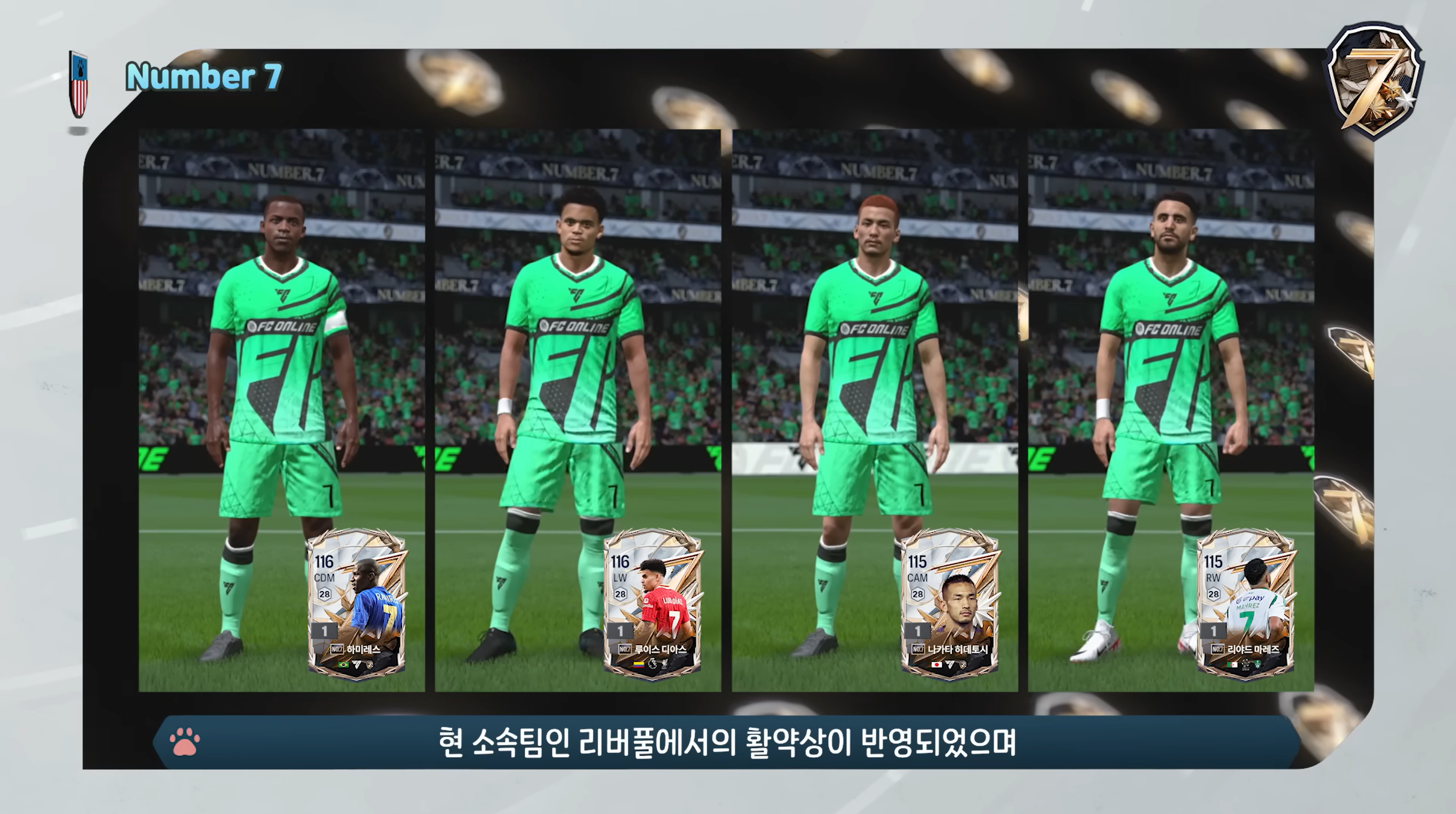 Mùa thẻ chính mà FC Online Hàn ra mắt chính là mùa thẻ Number 7. Đây là mùa thẻ tôn vinh những cầu thủ xuất sắc trong mặc áo số 7 huyền thoại, một trong những số áo mà nhiều cầu thủ tấn công luôn ao ước sở hữu.