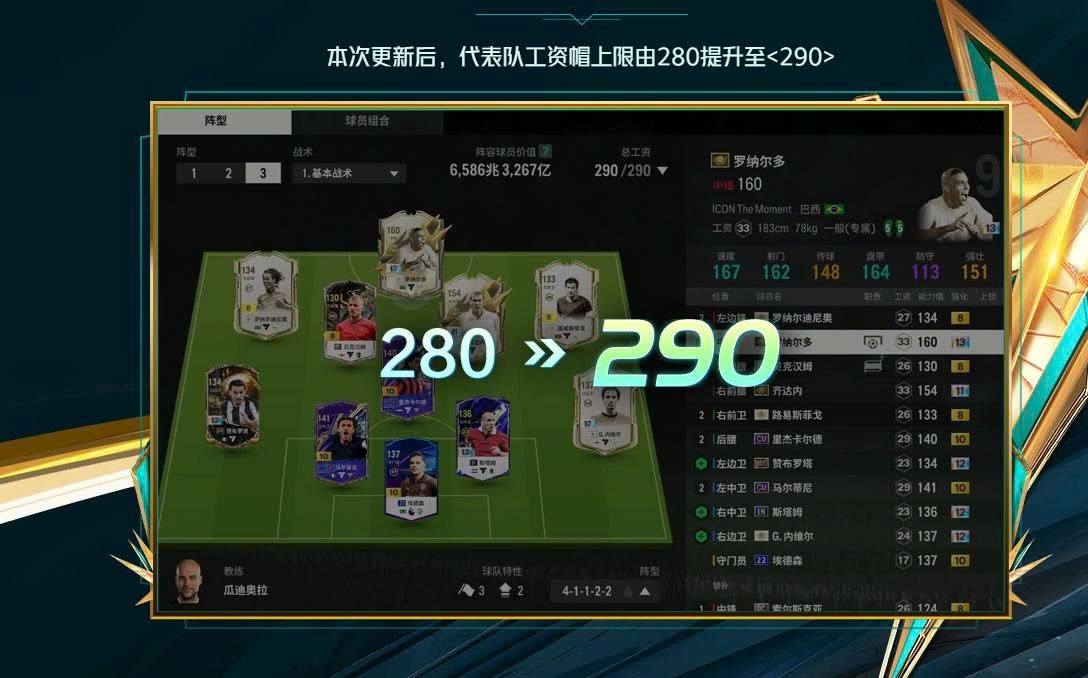 Một trong những mục đầu tiên được đưa ra ở bản cập nhật này là việc tăng mức nâng cấp cầu thủ từ 10 lên 13, nâng lương đội hình lên 290 tại server Trung Quốc. Ngoài ra, việc thay đổi và cập nhật gameplay mới cũng được FC Online Trung đưa ra để cải thiện và làm mới trải nghiệm người dùng.