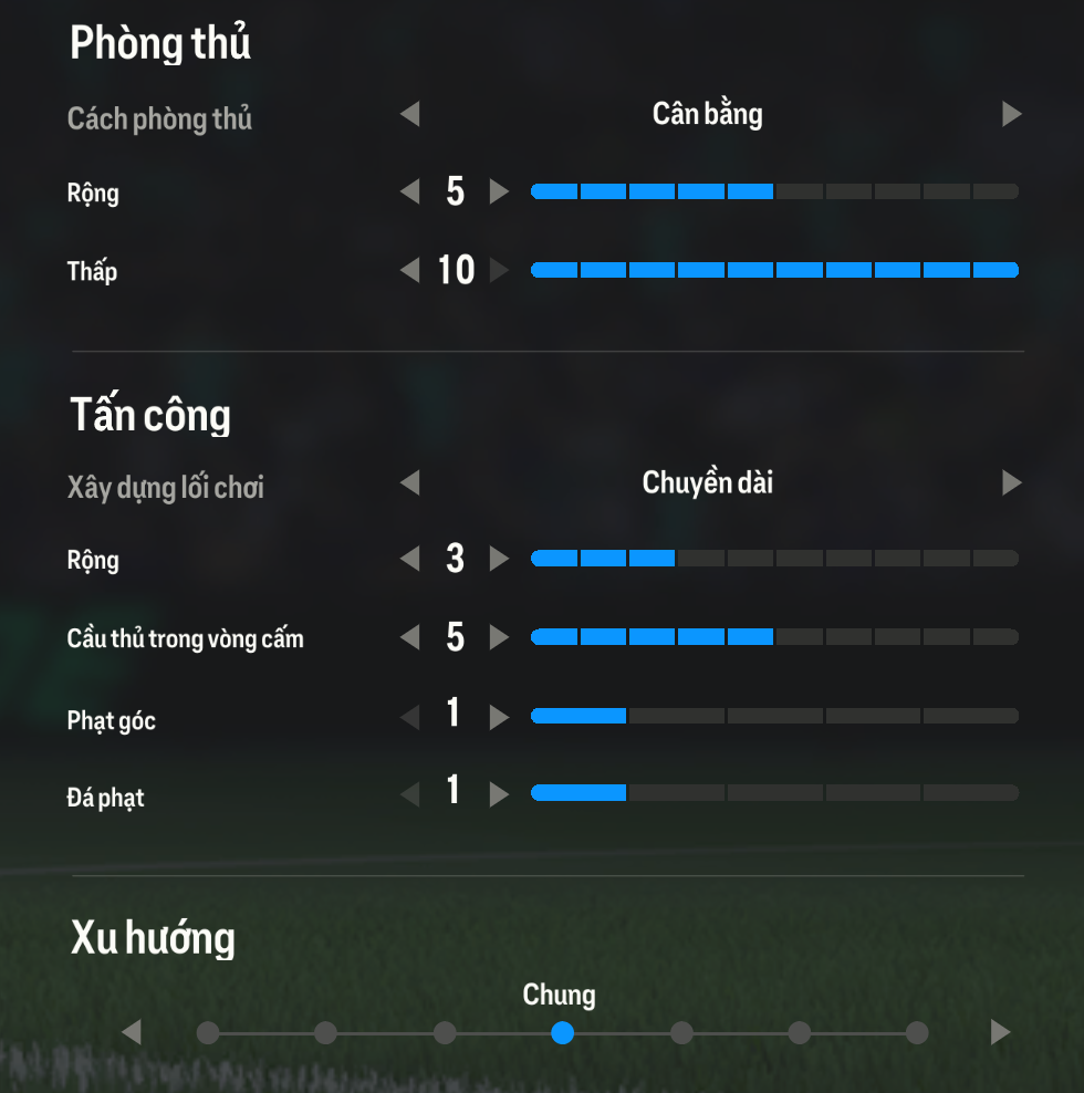 Chiến thuật đơn được thiết lập như hình nhằm tối ưu lối chơi của toàn đội