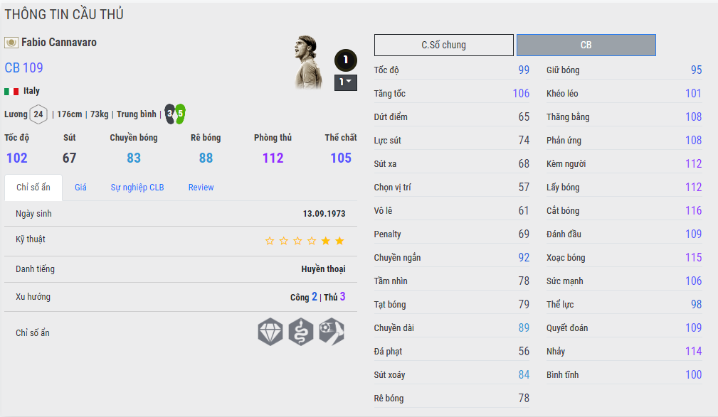 Trường hợp của Cannavaro là một ví dụ điển hình, khi anh có chỉ số nhảy lên tới 114, nhưng rất ít người dám sử dụng trung vệ này trong đội hình vì anh lùn quá...Điều này là hoàn toàn đúng với thực tế hiện nay khi mà các tiền đạo có chiều cao vượt trội sẽ luôn có cách để đè những cầu thủ khác xuống nhằm mục đích tạo cho mình là người bật cao nhất.