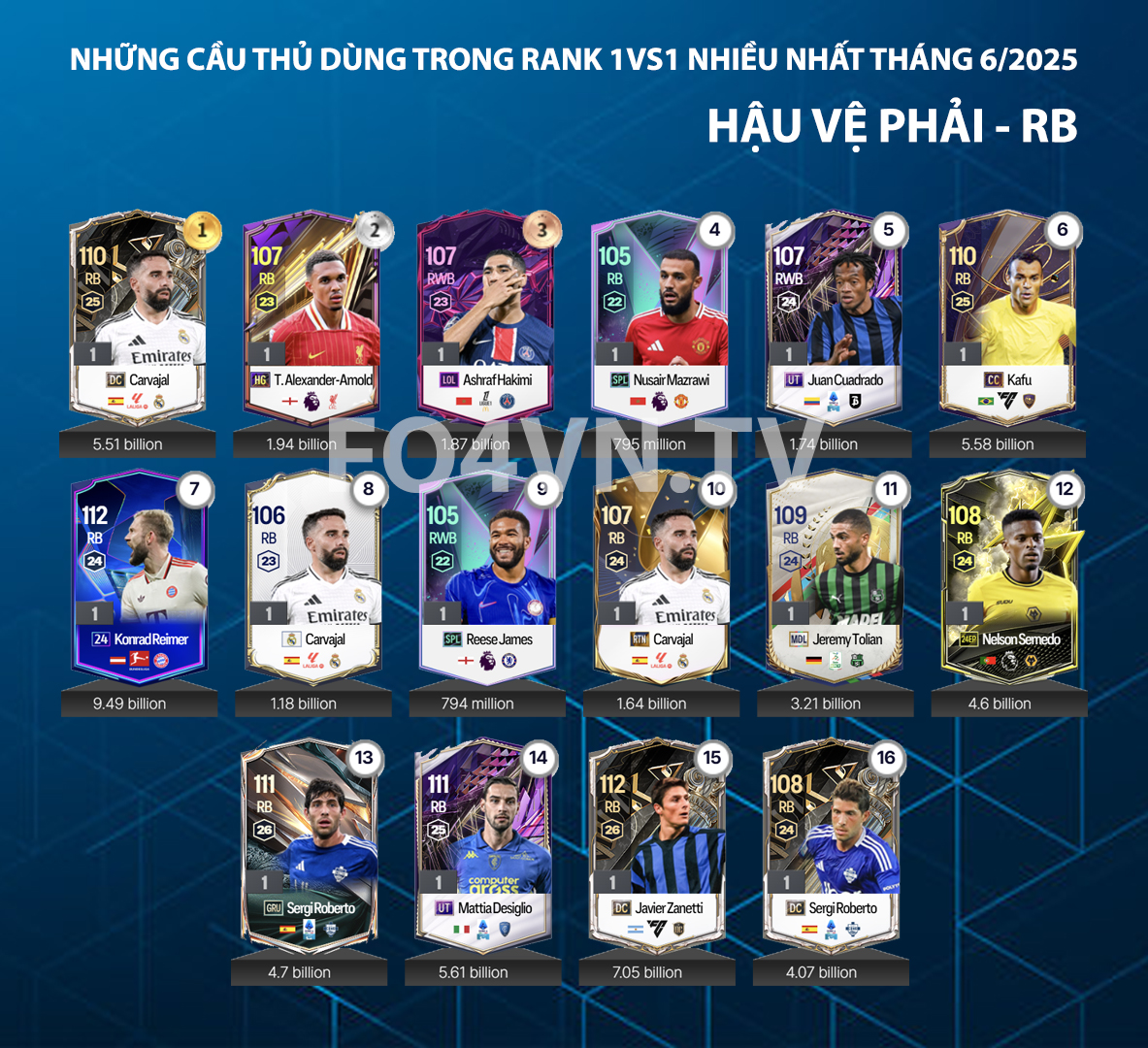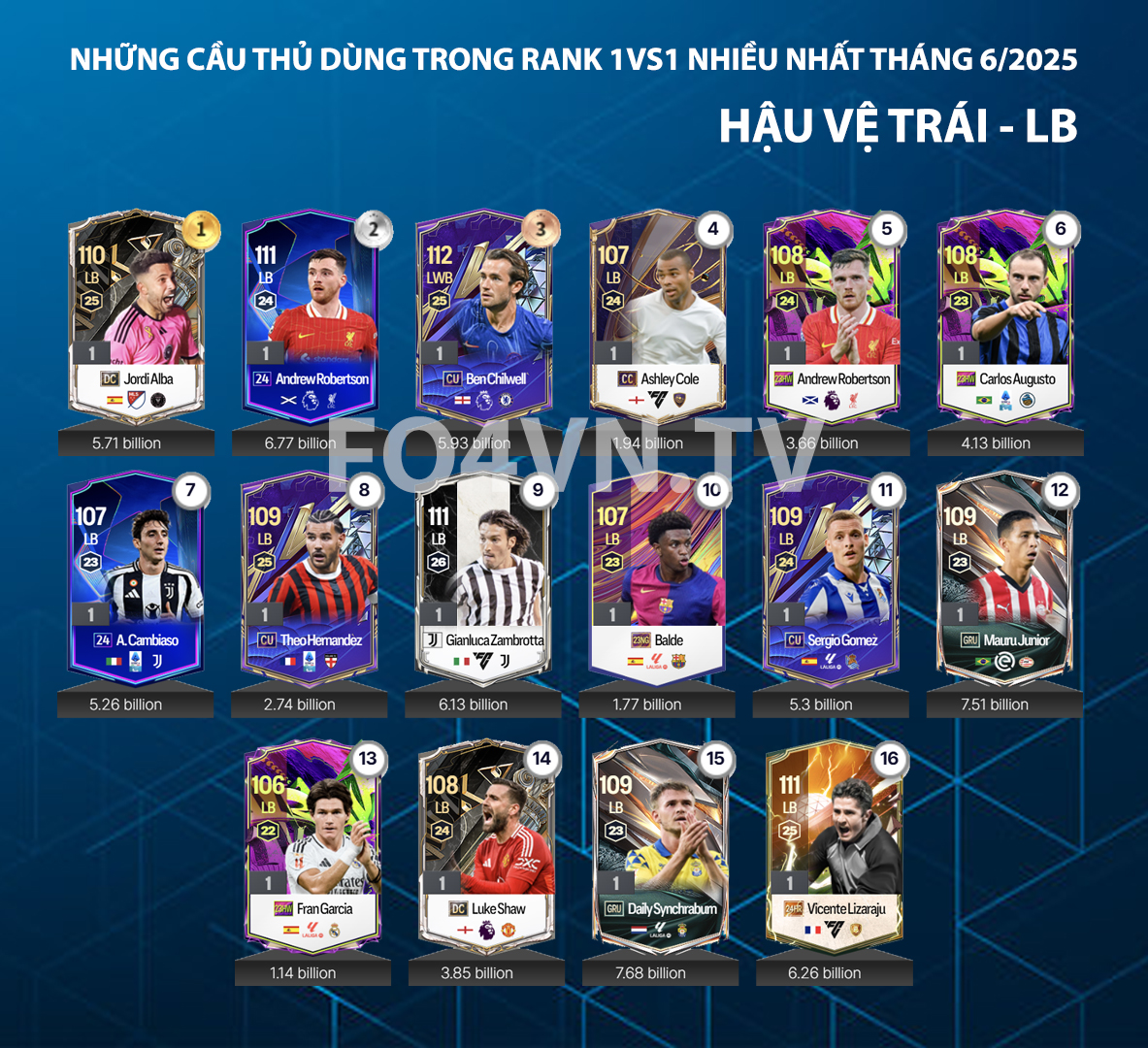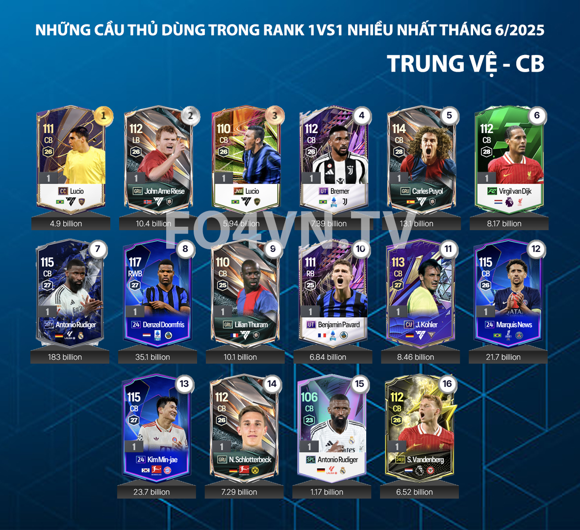 Từ các trung vệ cao lớn, chơi chắc chắn trong không chiến, cho đến những hậu vệ biên bền bỉ lên công về thủ, hàng thủ chất lượng giúp bạn kiểm soát thế trận và hạn chế tối đa rủi ro trước khung thành. Những mùa thẻ đỉnh cao như ICON, 24UCL hay 25TOTY mang đến các huyền thoại như Maldini, Nesta, van Dijk, giúp người chơi tự tin trước mọi đối thủ nhờ AI phòng ngự thông minh và kỹ năng cắt bóng xuất sắc.