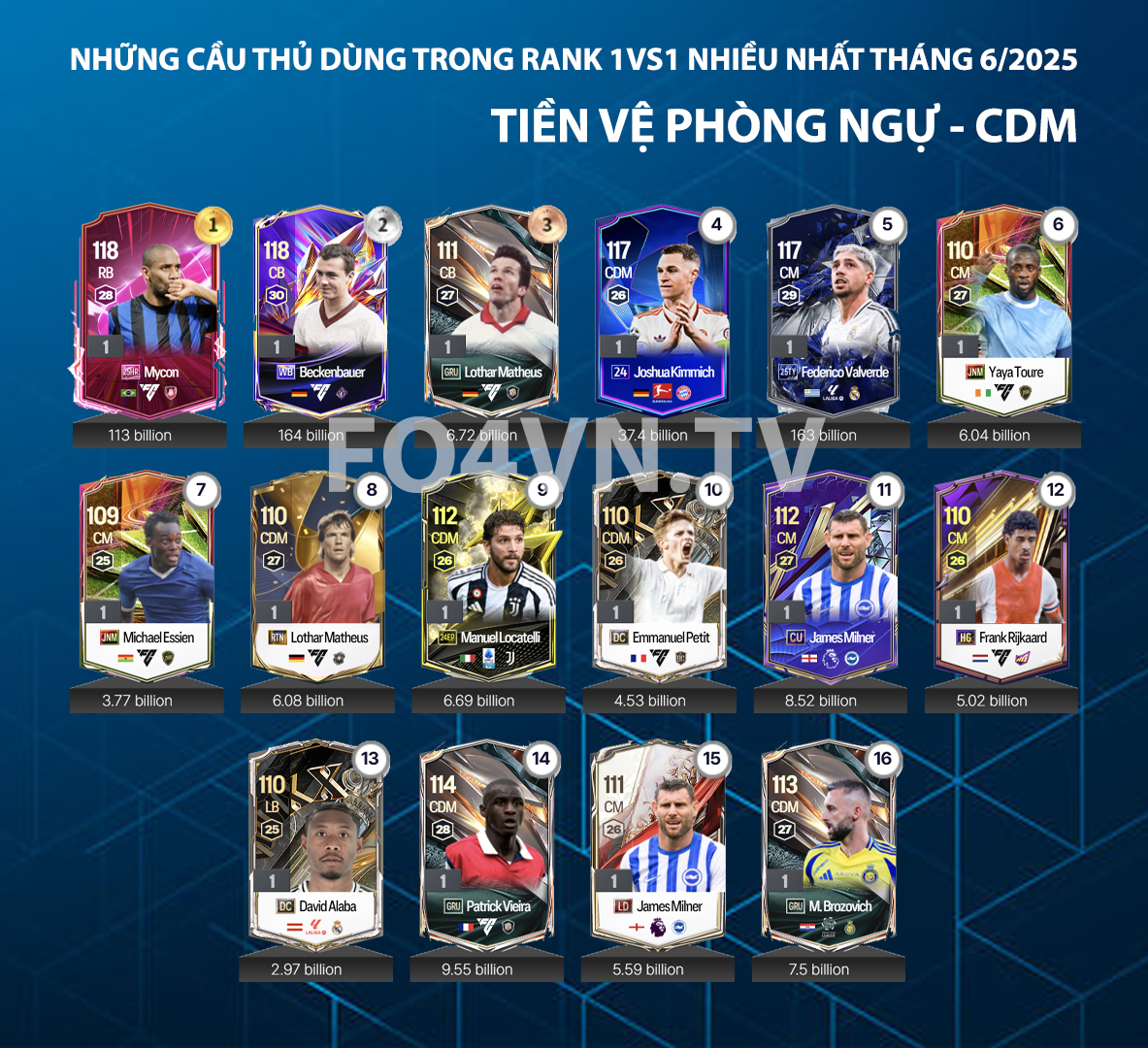 Các mùa thẻ hàng đầu thường mang đến những tiền vệ sở hữu bộ chỉ số toàn diện: tranh chấp tốt, chuyền bóng chính xác và khả năng tham gia tấn công lẫn phòng ngự hiệu quả. Sở hữu một tuyến giữa chất lượng giúp đội hình của bạn kiểm soát thế trận, bẻ gãy ý đồ pressing của đối thủ và tạo ra cơ hội từ mọi vị trí trên sân.