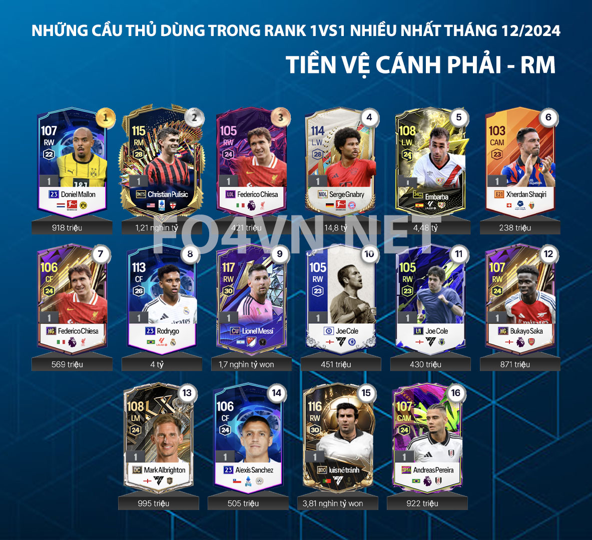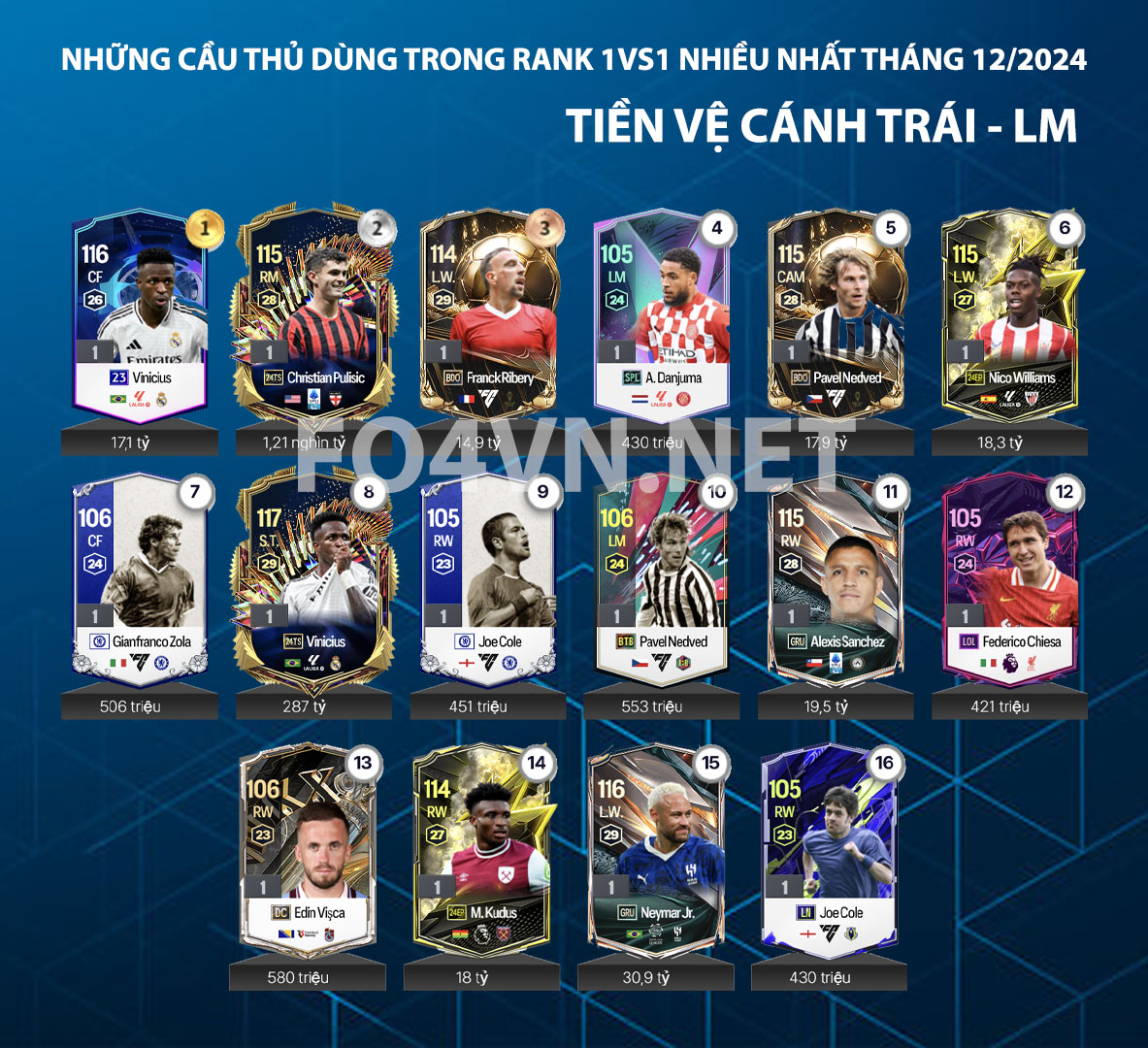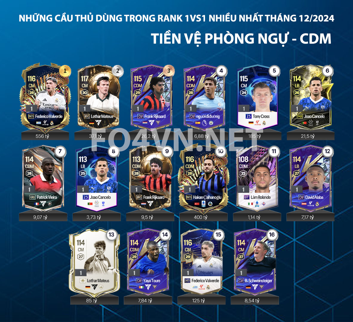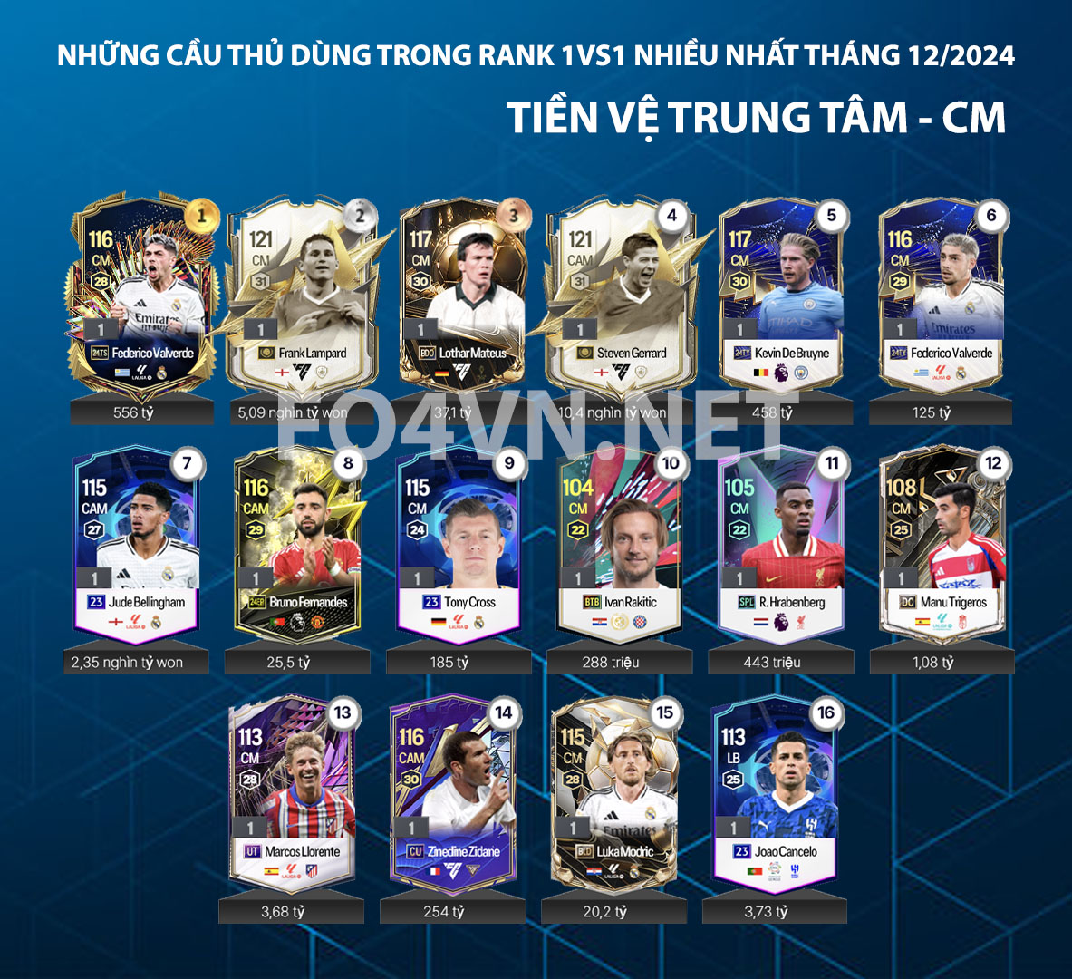 Vậy đâu là những cầu thủ được dùng nhiều nhất trong FC Online tháng 12/2024 cho vị trí tiền vệ, hãy cùng tìm hiểu ở bài viết dưới đây