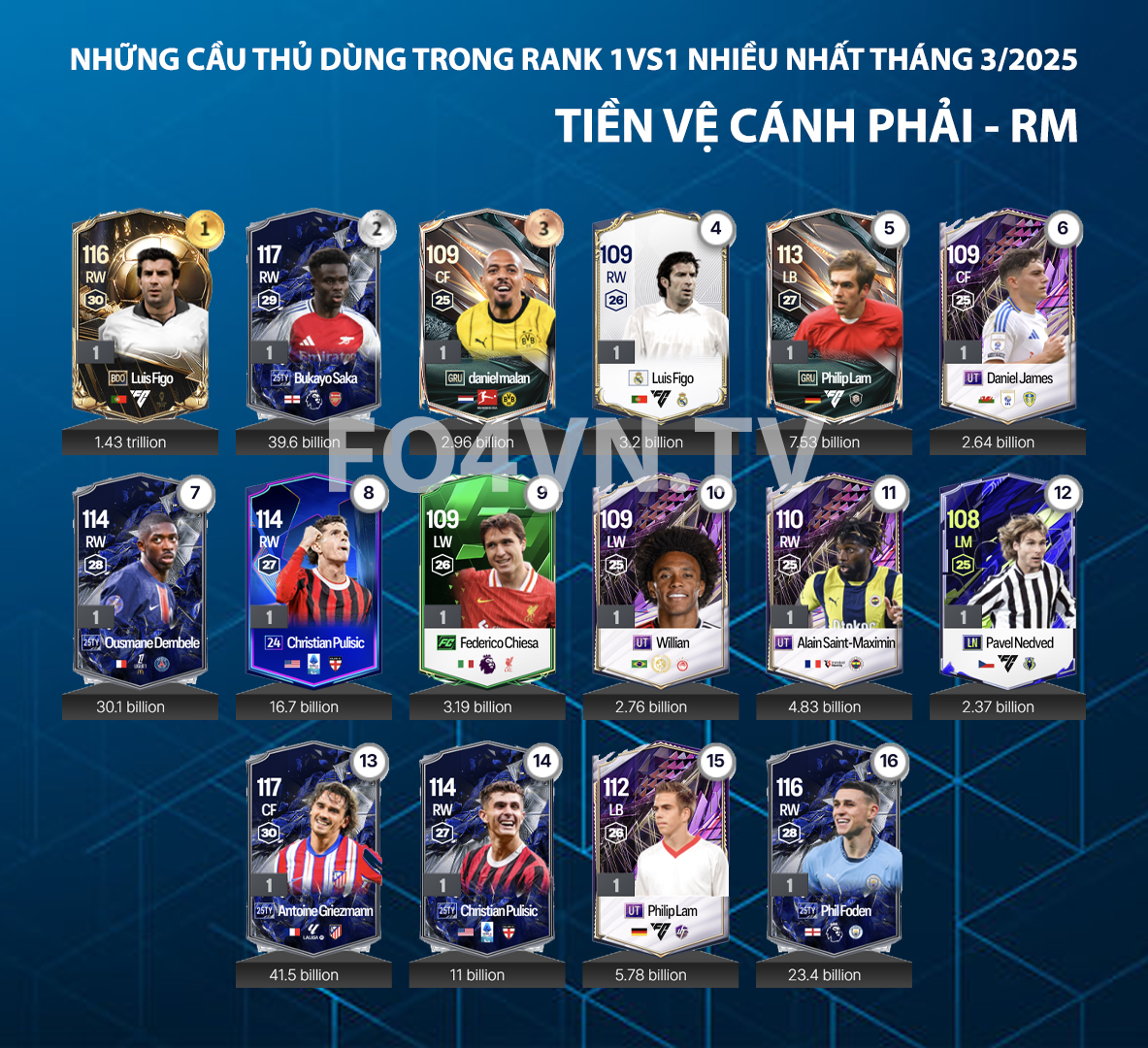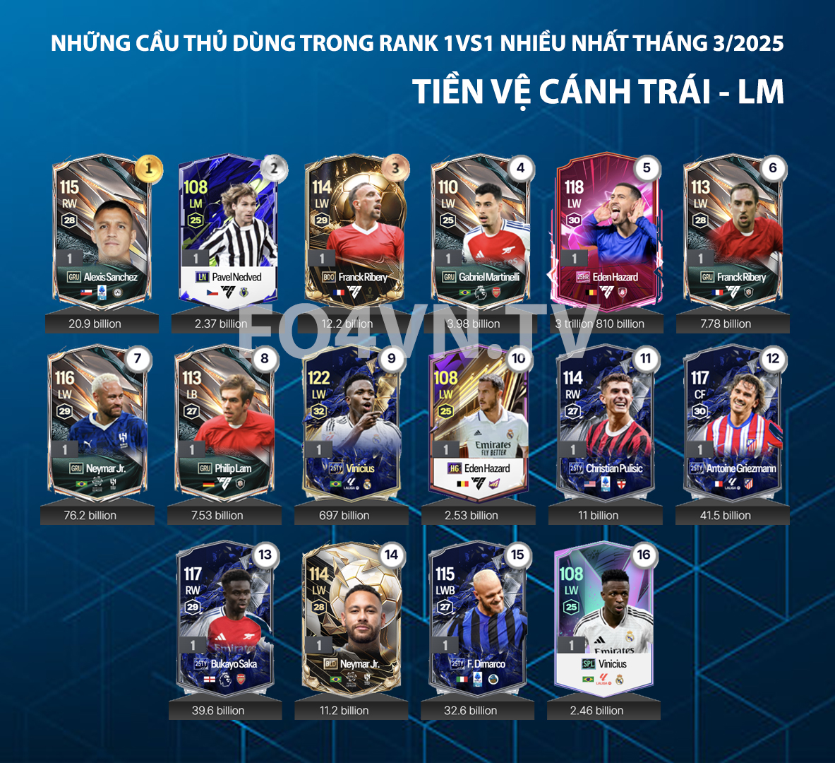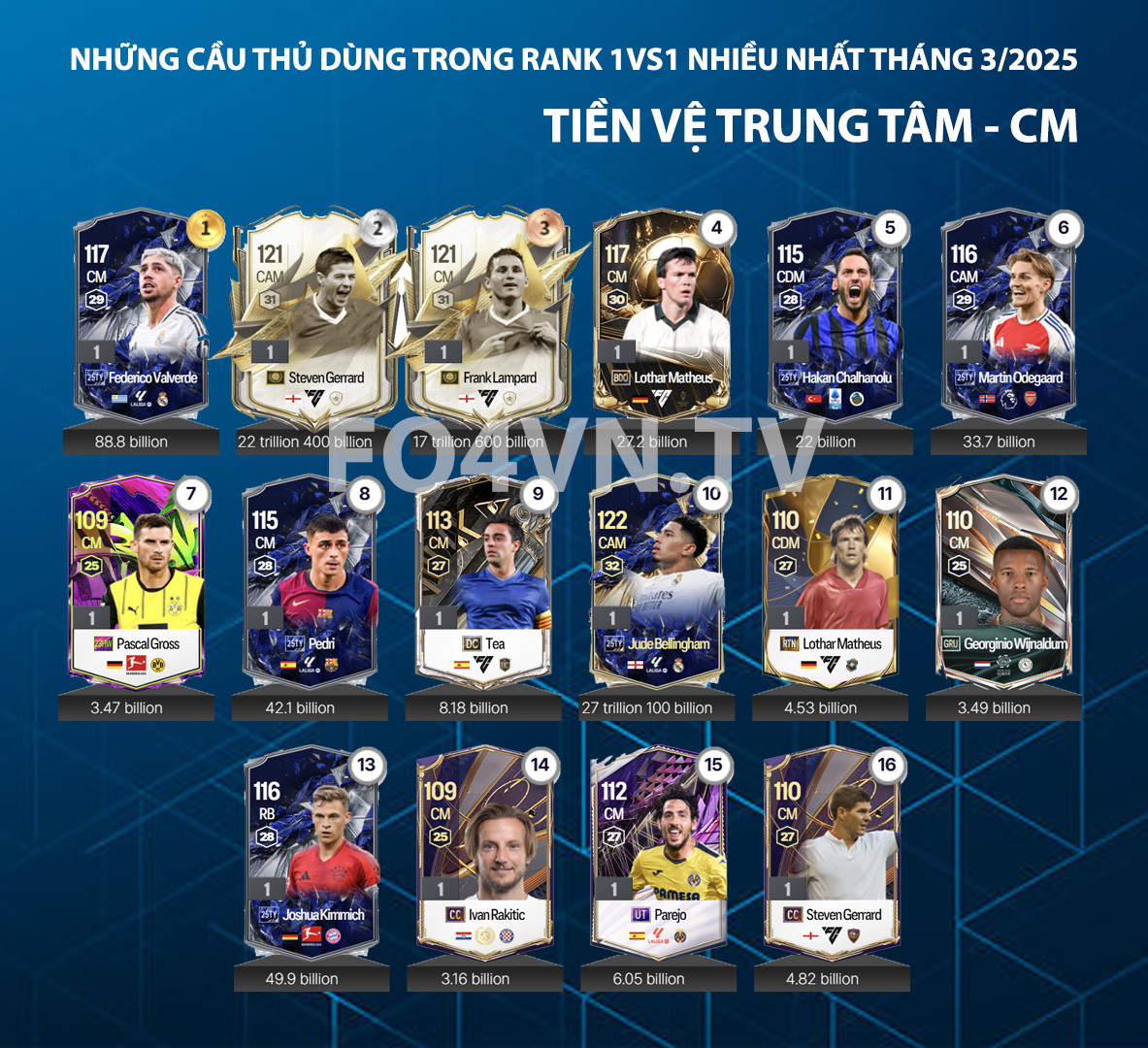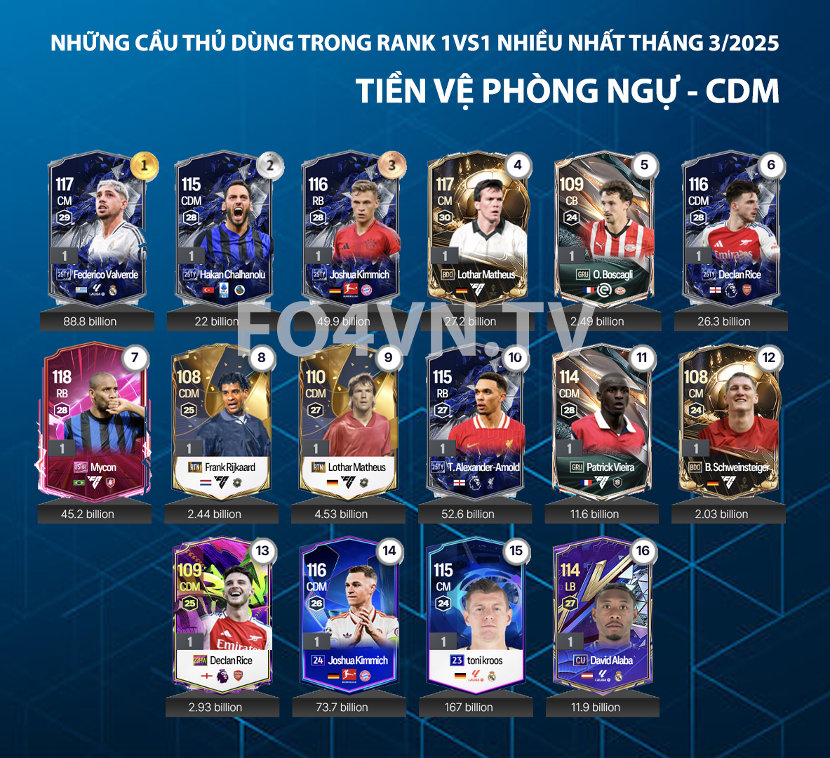 Hôm nay, hãy cùng tham khảo danh sách những cầu thủ được dùng nhiều nhất FC Online rank Hàn tháng 3/2025 vừa qua ở vị trí tiền vệ. Chi tiết ngay phía dưới đây