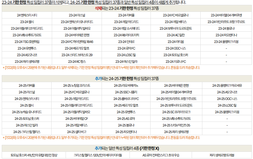 Tuy nhiên, team color đương đại chỉ áp dụng cho những câu lạc bộ có thành tích tốt, đứng ở phía trên của bảng xếp hạng ở các giải đấu lớn. Điều này đồng nghĩa với việc những CLB không đáp ứng được yếu tố này sẽ bị xóa team color đương đại và được thay mới bởi các team color đương đại mới.