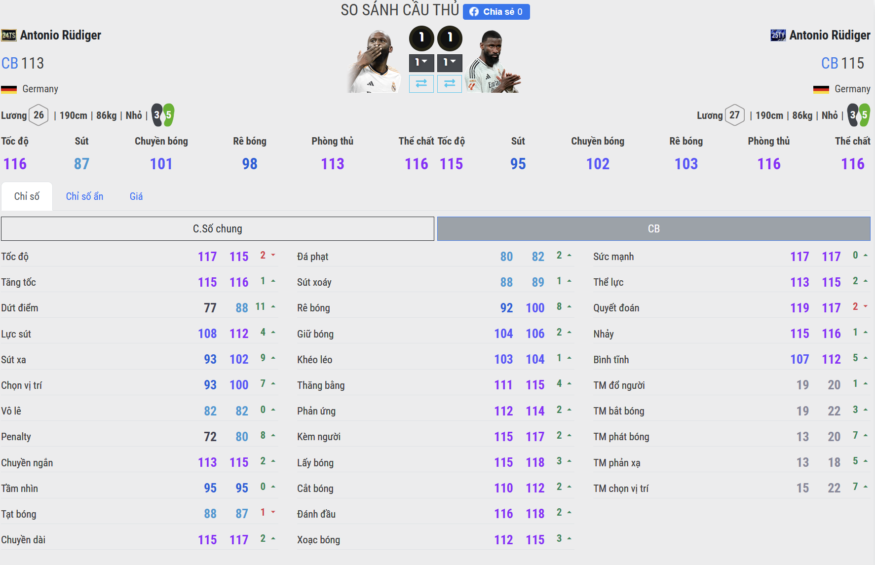 Không có nhiều khác biệt khi cả 2 mùa thẻ đều cho thấy những điểm nổi bật về tốc độ dù không còn chỉ số ẩn Ma tốc độ. Rudiger vẫn rất nhanh trong các tình huống đua tốc, mạnh mẽ trong các pha áp sát vơi tốc độ cao khiến đối thủ gặp nhiều khó khăn trong việc triển khai tấn công