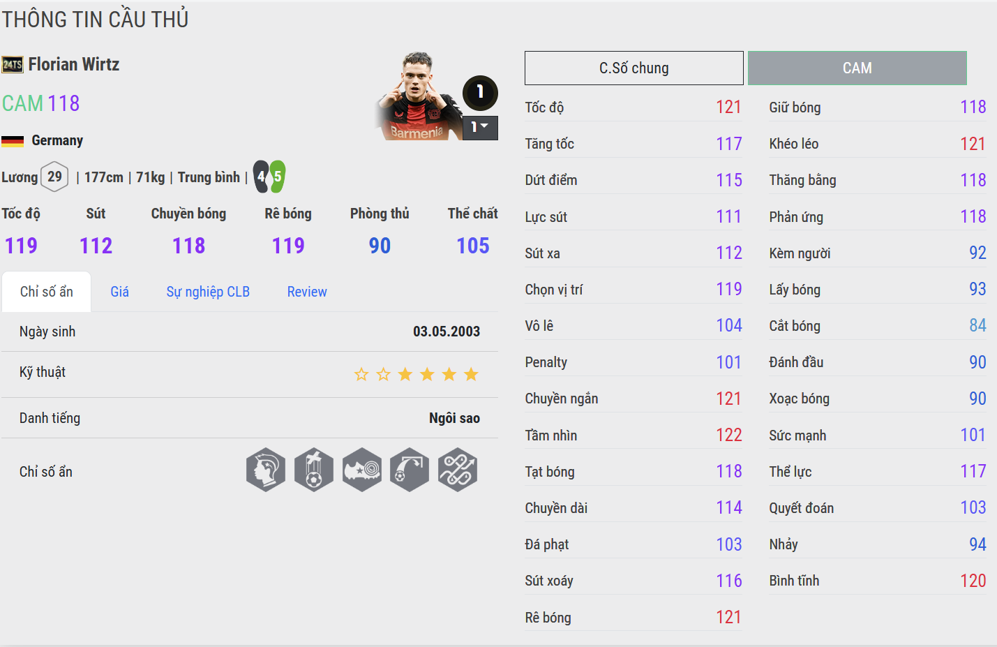 Mùa thẻ 25TY và 24TS là 2 mùa thẻ chất lượng hàng đầu của Wirtz trong FC Online. Vậy cầu thủ người Đức thể hiện ra sao ở 2 mùa thẻ này và đâu là những điểm khác biệt, hãy cùng tìm hiểu ở bài viết dưới đây
