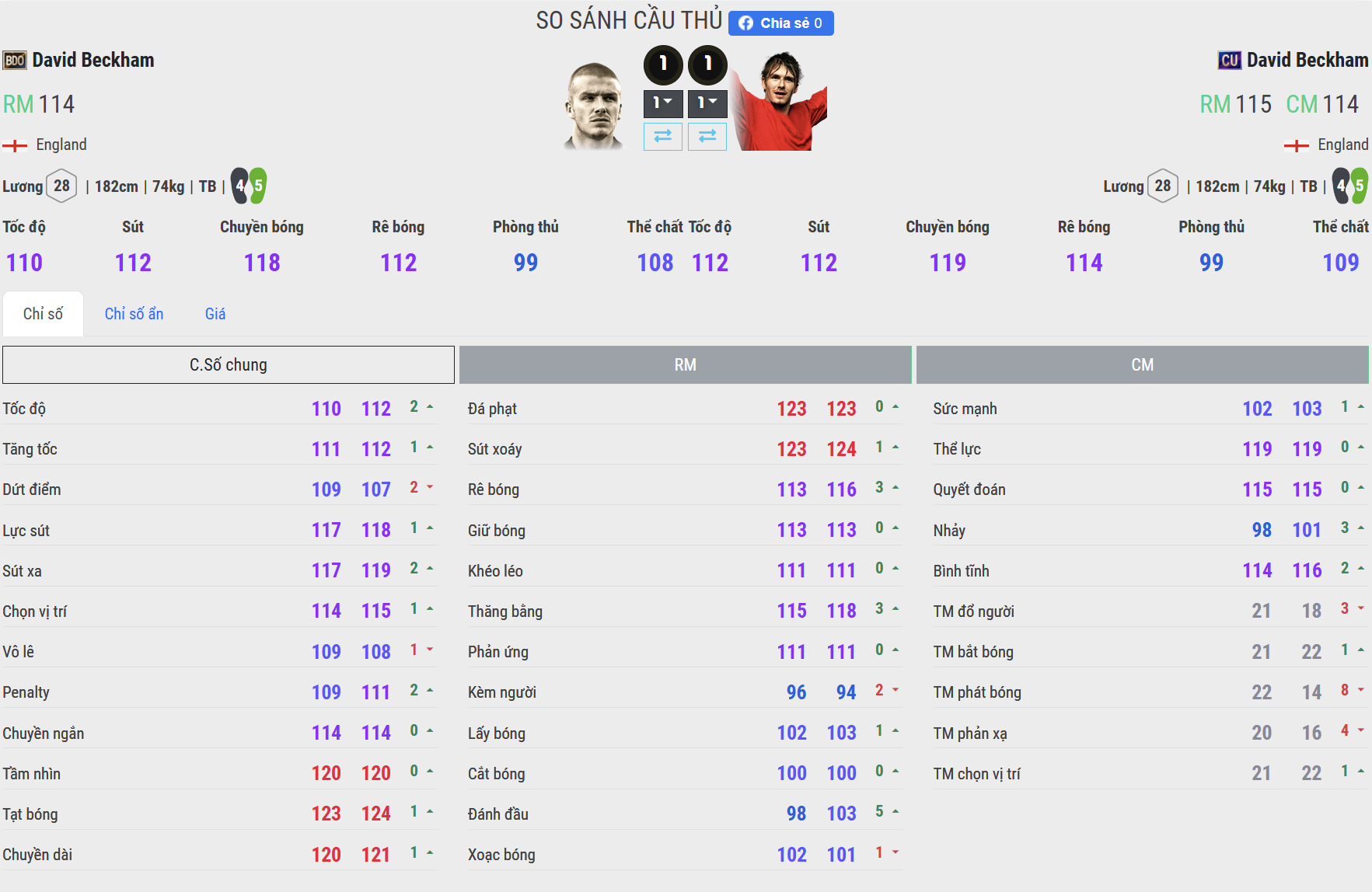 Có thể thấy rõ, Beckham của cả 2 phiên bản đều cho thấy hiệu quả tăng tốc ở mức khá, anh không quá nhanh nhưng cũng cho thấy được những hiệu quả ở mức ổn khi chơi ở vị trí tiền vệ trung tâm hoặc tiền vệ cánh. Tuy nhiên mùa CU vẫn cho cảm giác thanh thoát và có phần linh hoạt hơn đôi chút.