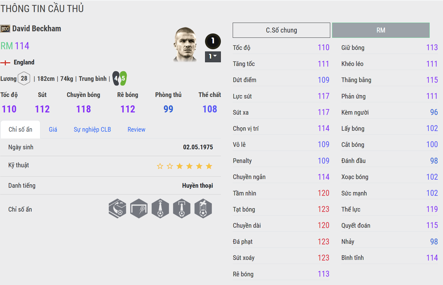 Trong FC Online, David Beckham là một cầu thủ được săn đón nhờ bộ chỉ số toàn diện, đặc biệt là khả năng chuyền bóng, sút phạt và tạt cánh cực kỳ chính xác. Không những vậy anh còn sở hữu nhiều team color mạnh giúp anh dễ dàng được xây dựng và vận hành một cách hiệu quả.