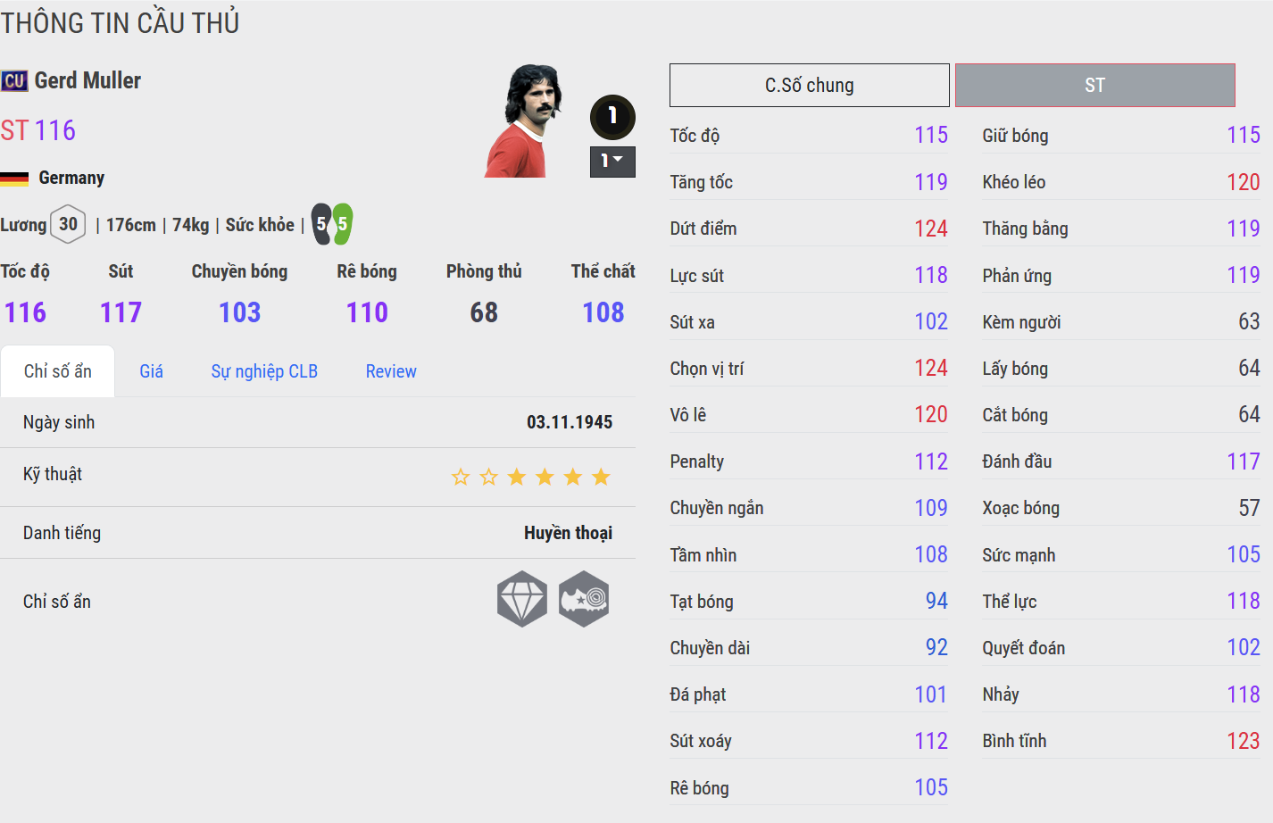 Gerd Müller là một trong những tiền đạo vĩ đại nhất trong lịch sử bóng đá, được mệnh danh là "Vua dội bom" nhờ khả năng săn bàn đáng sợ. Sinh năm 1945, huyền thoại người Đức đã ghi hơn 700 bàn thắng trong sự nghiệp, đặc biệt là 568 bàn cho Bayern Munich, giúp CLB thống trị bóng đá châu Âu những năm 1970.