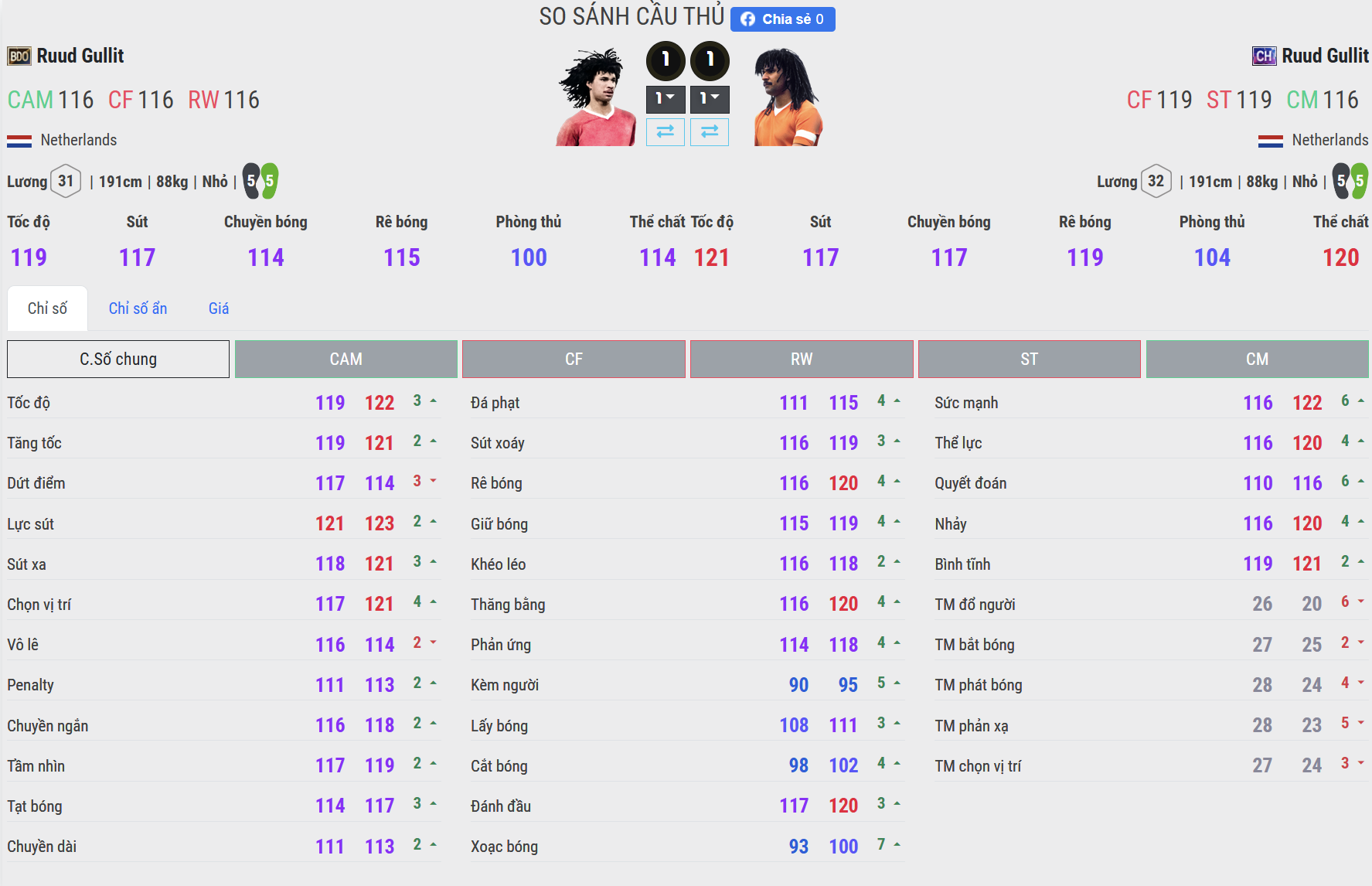 CH: Hoàn thiện hơn rất nhiều. Khả năng dứt điểm toàn diện và hiệu quả cao, từ sút xa, sút trong vòng cấm đến volley. Đây là bản Gullit mà các HLV có thể tin tưởng để ghi bàn đều đặn.