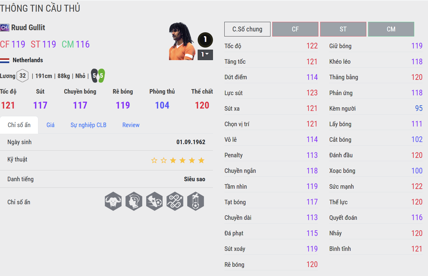 CH: Đỉnh cao hơn. Vừa lì lợm hơn, vừa dẻo dai hơn, Gullit CH gần như không ngán bất kỳ CB hay CDM nào trong tranh chấp tay đôi.