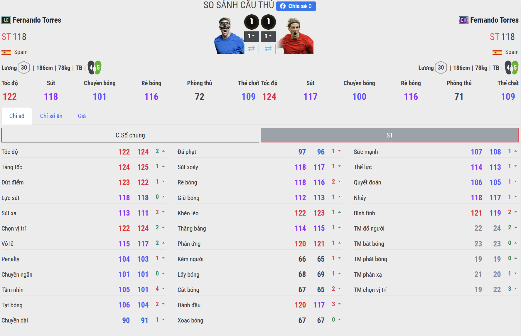 Torres ở mùa LE tái hiện rõ nét hình ảnh “El Niño” thời đỉnh cao với tốc độ bứt phá cực nhanh, bước chạy thanh thoát, khả năng thoát xuống và di chuyển sau lưng hậu vệ cực kỳ lợi hại. Trong khi đó, phiên bản CH vẫn nhanh nhưng không đạt đến sự bùng nổ như LE, tốc độ duy trì ổn định hơn là bứt tốc thần tốc, phù hợp lối chơi phối hợp thay vì phản công trực diện.