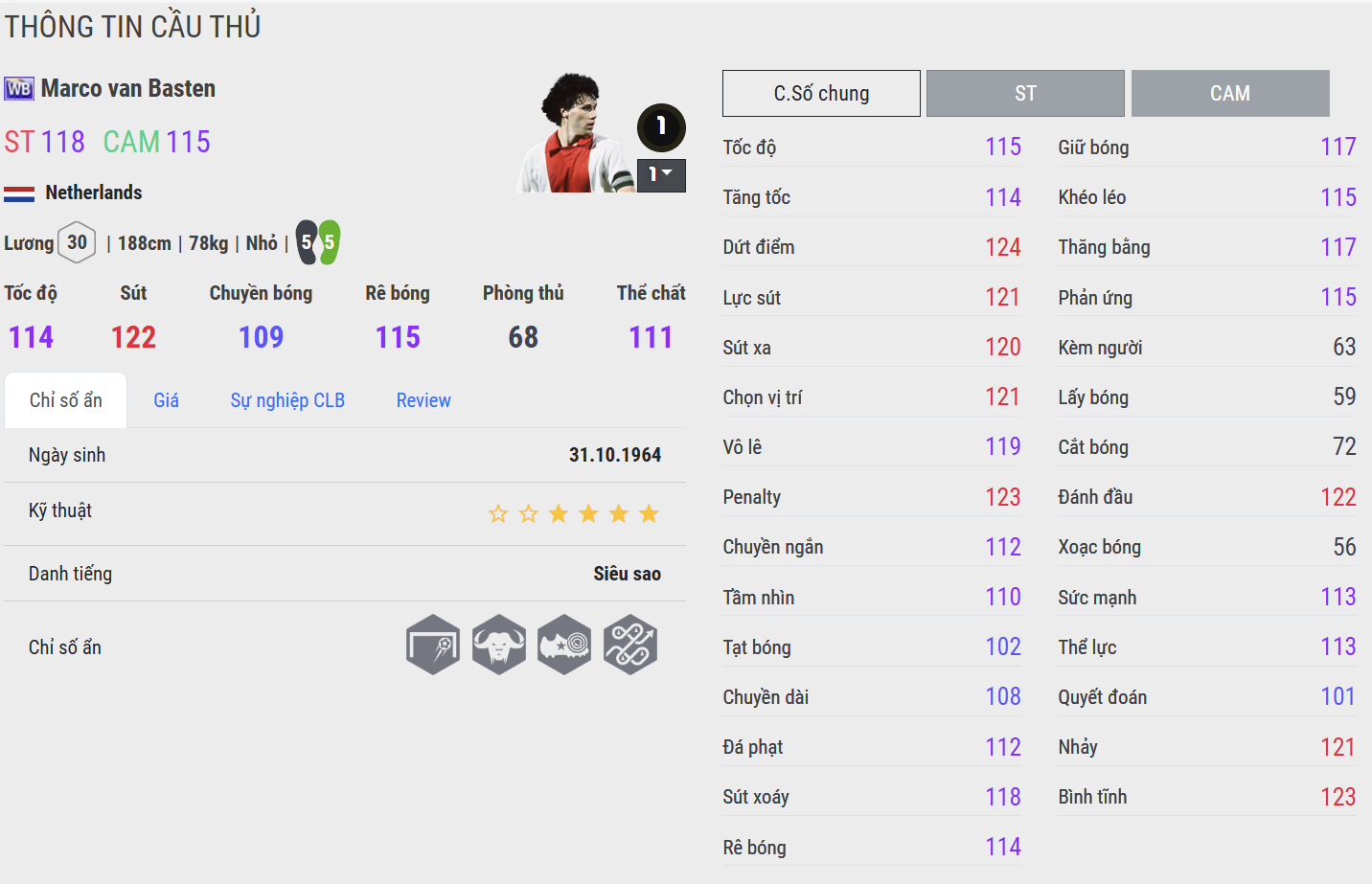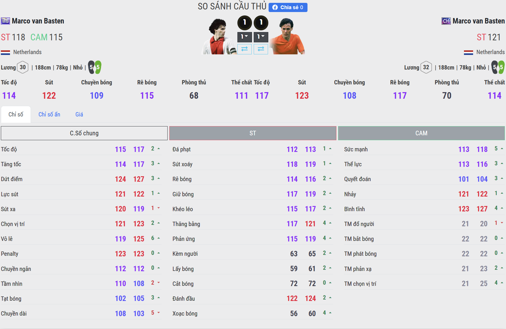 CH: Vượt trội hơn hẳn. Không chỉ giữ được sự bén trong vòng cấm, Van Basten CH còn cải thiện lực sút, độ ổn định và sự đa dạng trong cách ghi bàn. Đây là phiên bản thể hiện đúng hình ảnh “sát thủ vòng cấm” nhưng hiện đại hơn.