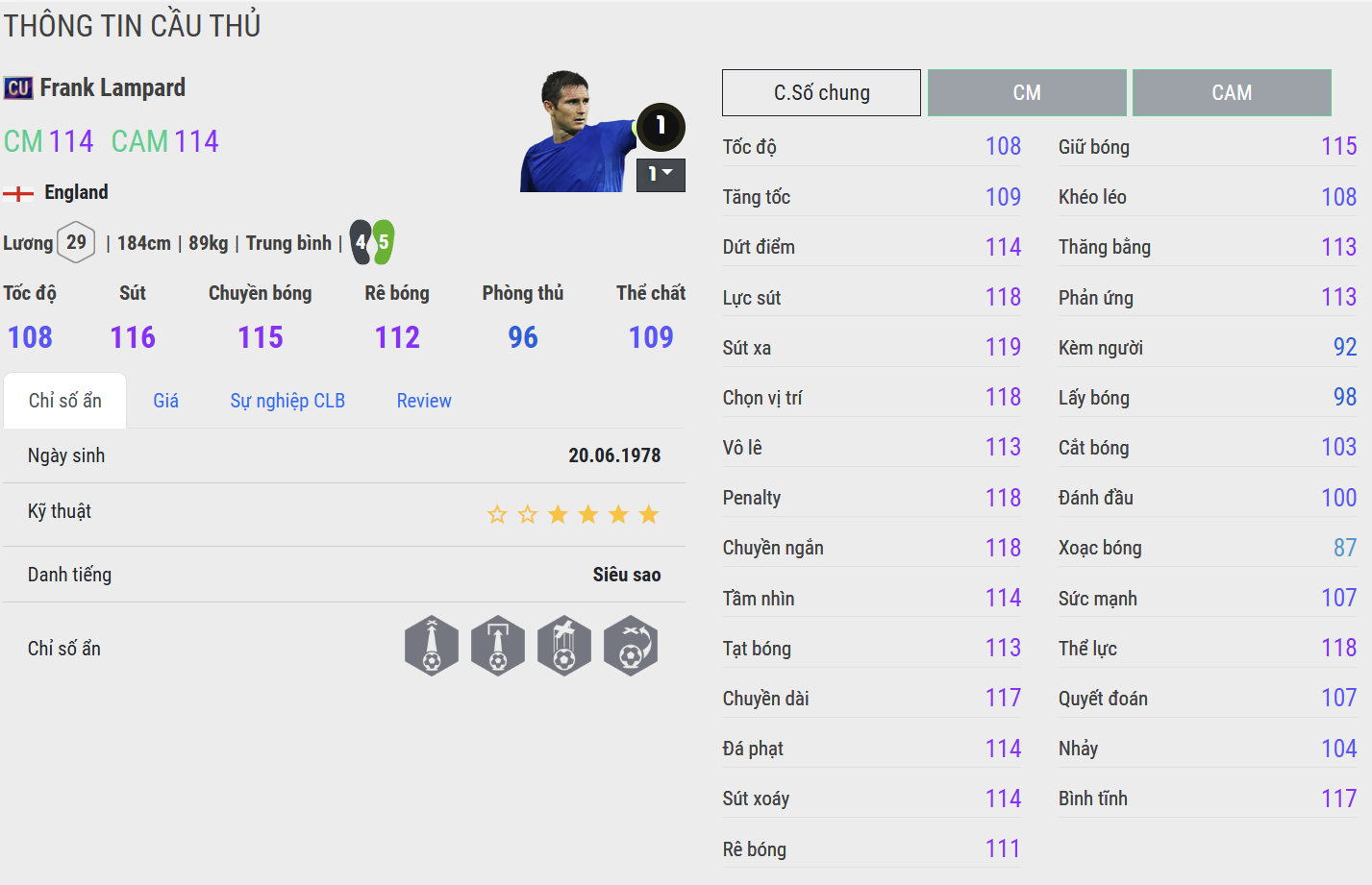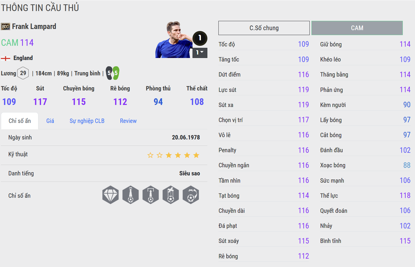 Trong game, Frank Lampard được xem là một tiền vệ trung tâm cực kì chất lượng cho team color Chelsea và ĐT Anh. Anh sở hữu những tố chất ấn tượng để trở thành một CDM quốc dân phù hợp với meta hiện tại.