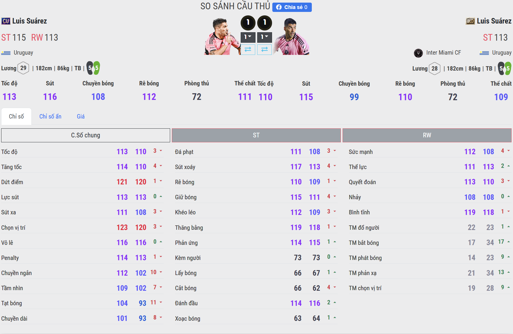 Có thể thấy Suarez mùa CU có phần nhanh nhẹn hơn so với mùa BLD. Nguyên nhân 1 phần là bởi ở mùa thẻ này, Suarez thậm chí có thể thi đấu như một tiền đạo cánh. Đó cũng là lí do khiến cảm giác bứt tốc và tằng tốc của mùa CU có phần ấn tượng hơn.