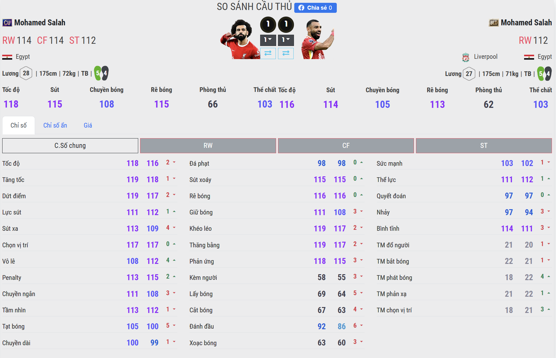 Vậy, hiện tại với 2 mùa thẻ BLD và CU, đâu là mùa thẻ hiệu quả của Salah, hãy cùng tham khảo bài so sánh dưới đây để biết thêm chi tiết.