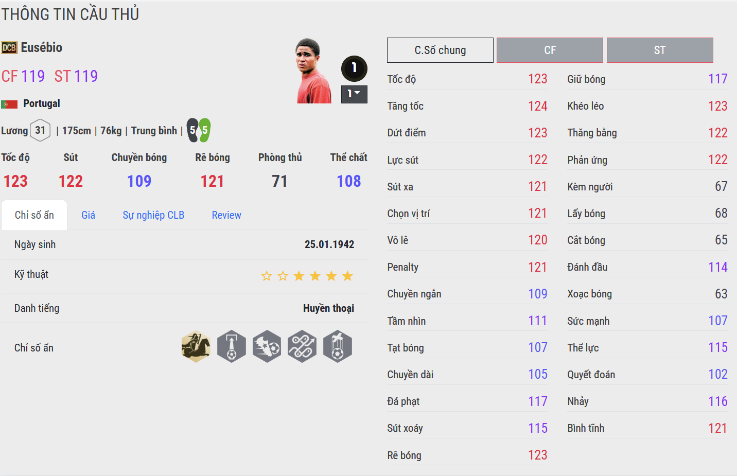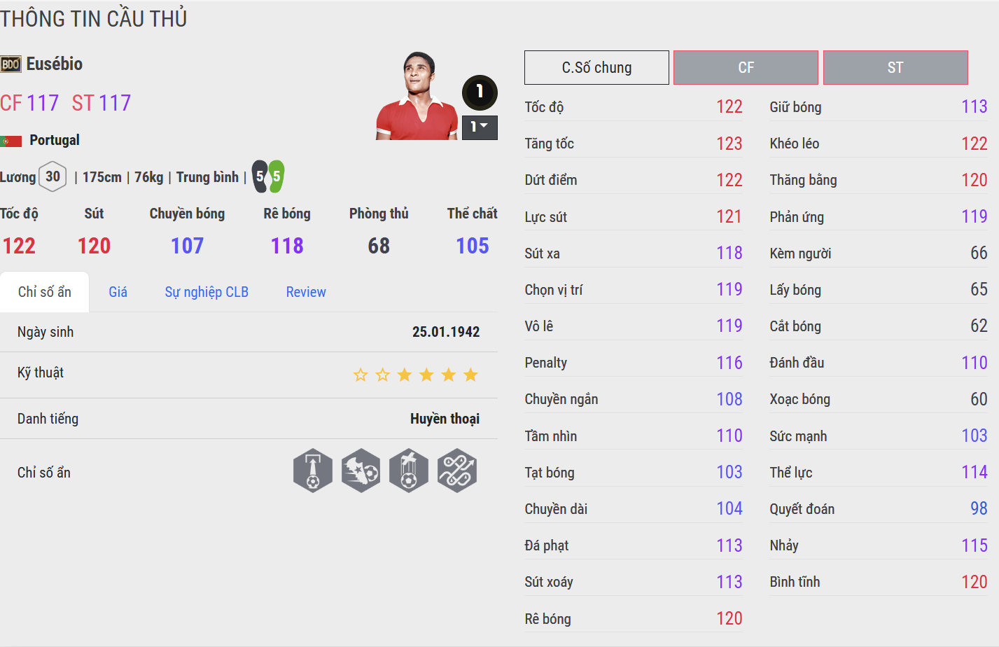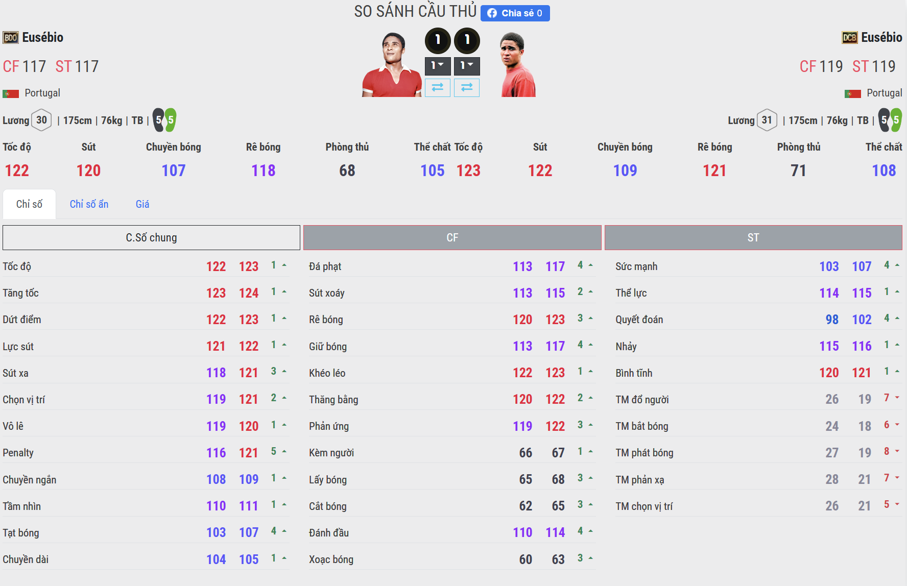 Eusébio ở cả hai mùa đều nguy hiểm nhờ chọn vị trí thông minh và khả năng bật nhảy tốt. Mùa DCB chắc chắn hơn trong các pha tranh chấp tay đôi, còn BDO thì toàn diện hơn khi đánh đầu đa dạng và kết thúc có độ chính xác cao hơn.