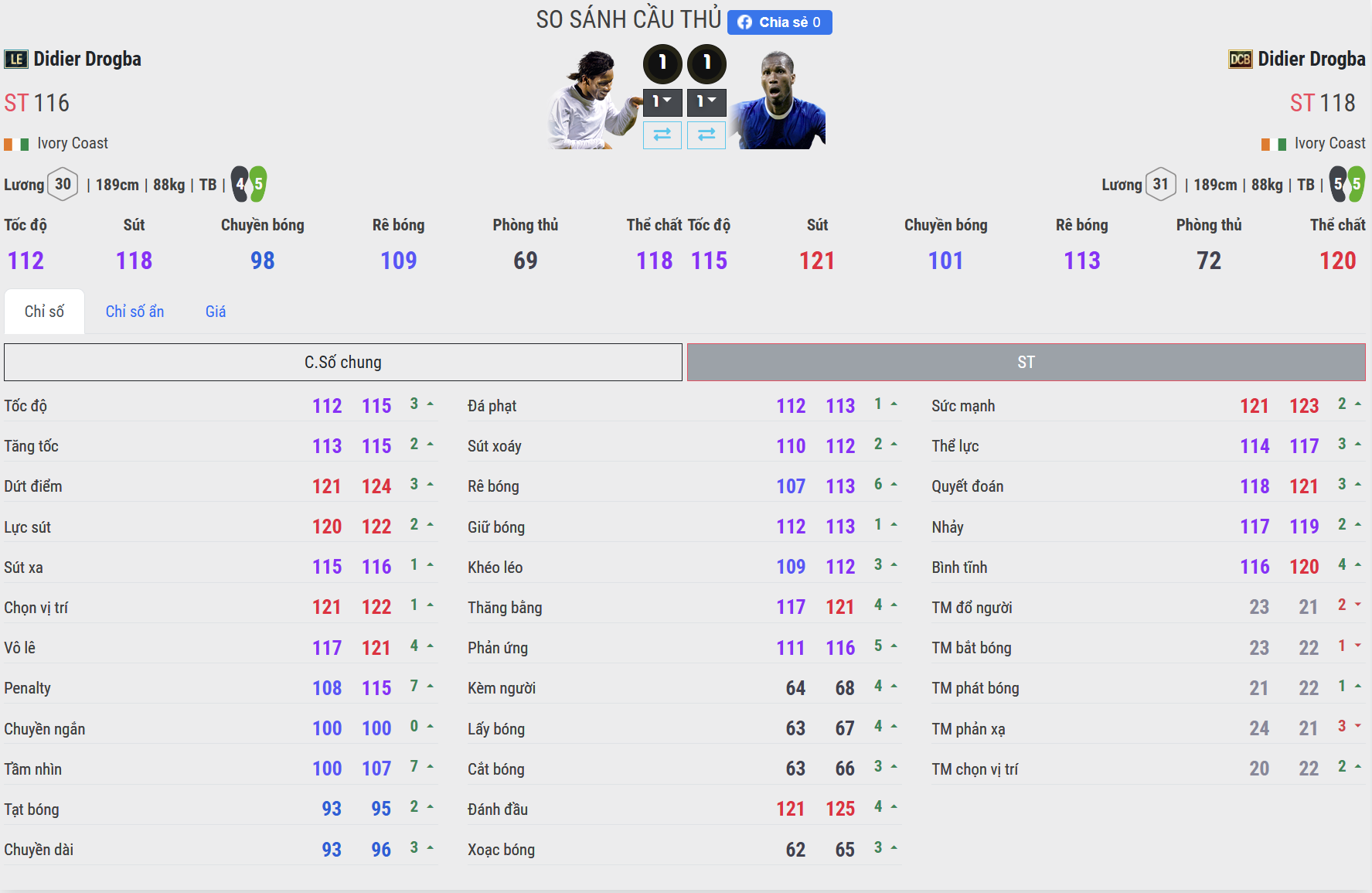 Đây là “đặc sản” của Didier Drogba – và cả hai mùa đều cực kỳ mạnh ở khía cạnh này. Tuy nhiên, sự khác biệt nằm ở cách thể hiện. LE là Drogba “nguyên bản”, lực tì cực khủng, cảm giác va chạm nảy người, có thể húc văng hầu hết trung vệ nếu chạm vai. Trong khi đó, DCB giữ nguyên sức mạnh nhưng cải thiện thăng bằng và khả năng giữ bóng khi bị truy cản từ phía sau. Anh không còn đè người thô bạo mà thiên về tì hợp lý và giữ trụ tốt. Nếu bạn thích phong cách “cắm đầu húc” của Drogba thời xưa, LE sẽ làm bạn phấn khích. Nhưng nếu muốn một Drogba kiểm soát tình huống, xử lý mềm mại mà vẫn có độ lì, thì DCB là lựa chọn chuẩn meta hơn.