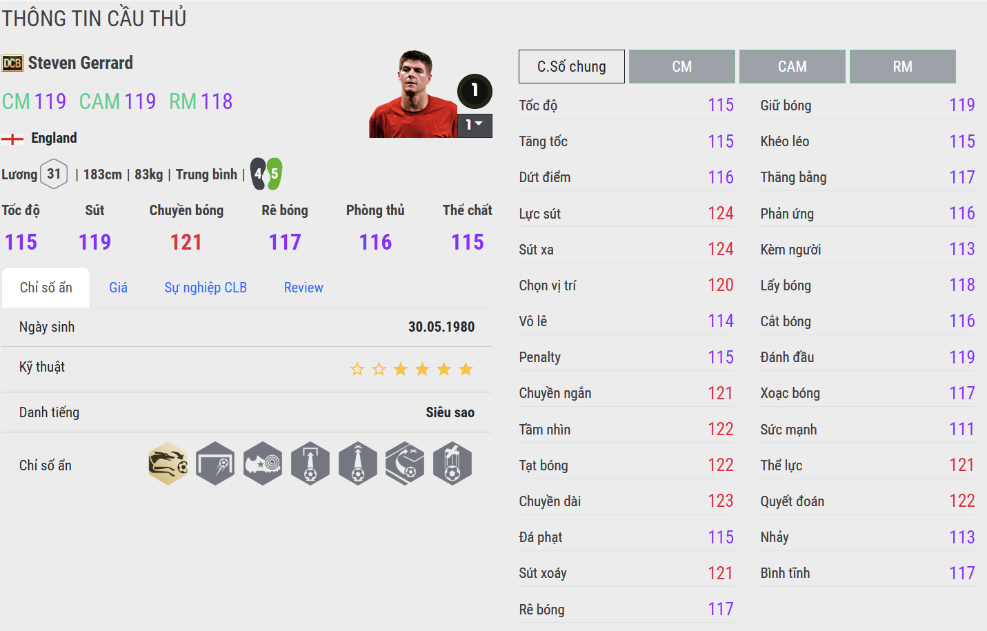 Gerrard mùa LE thể hiện đúng hình ảnh tiền vệ cổ điển: tốc độ ở mức khá, bứt tốc không quá đột biến nhưng di chuyển có chủ đích và thông minh. Anh thường chọn vị trí hợp lý hơn là chạy nhanh, phù hợp với lối đá kiểm soát và phát động tấn công từ xa. Trong khi đó, mùa DCB được nâng cấp rõ ở tốc độ lẫn tăng tốc, giúp Gerrard hoạt động linh hoạt hơn ở khu trung tuyến, đặc biệt trong các pha phản công nhanh hoặc khi pressing tầm cao. DCB cho cảm giác nhanh nhẹn, cơ động và hợp với meta tốc độ hơn hẳn, dù vẫn giữ nét “đầm” đặc trưng của Gerrard.