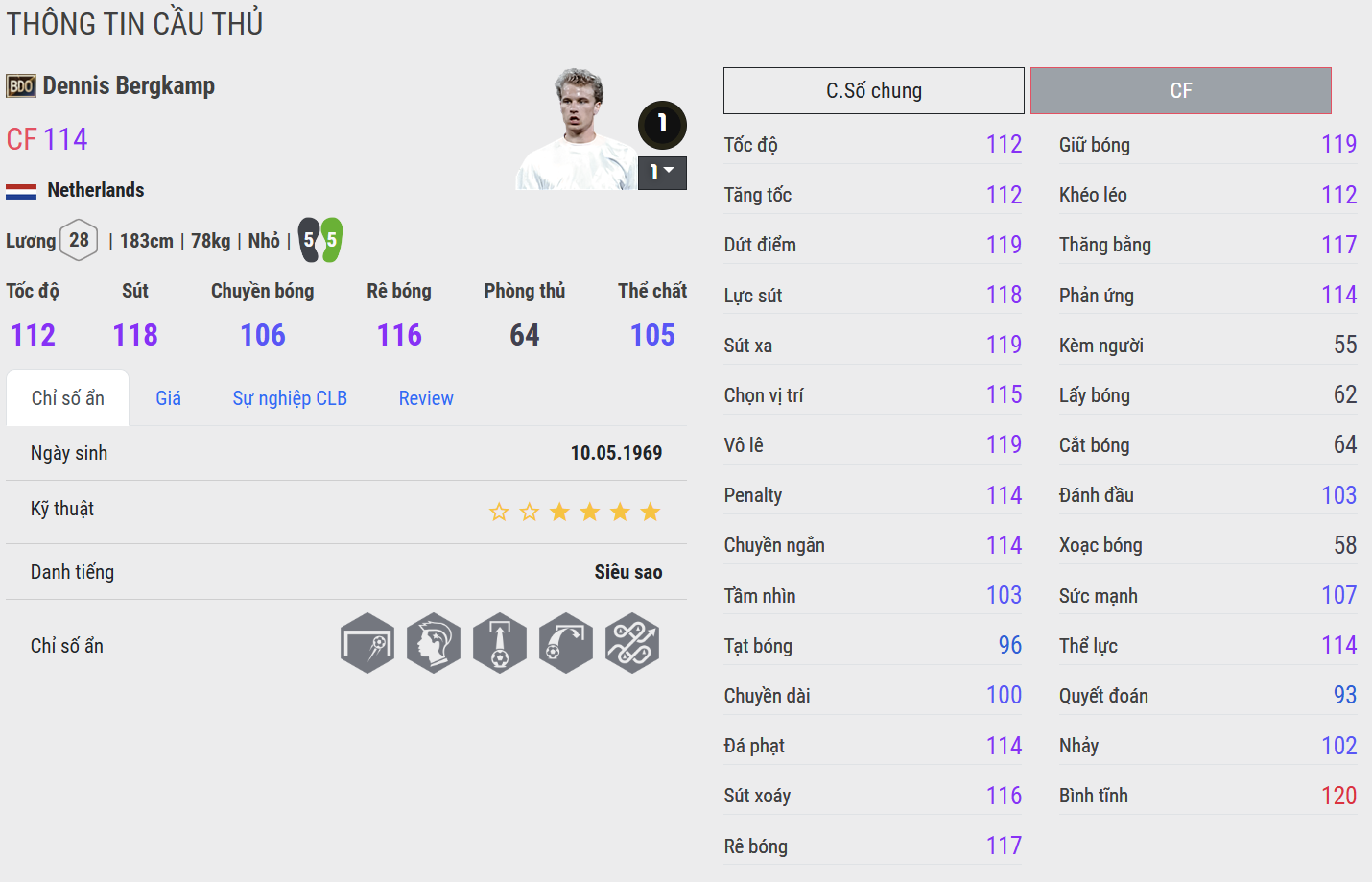 Có thể thấy, tốc độ ở cả 2 phiên bản GRU và BDO đều ổn nhưng lại thiếu đi ma tốc độ để tối ưu. Cảm giác Bergkamp không quá nhanh, khả năng tăng tốc khi đỡ bước 1 tốt nhưng duy trì tốc độ ở những quãng dài vẫn hơi yếu, dễ bị trung vệ quốc dân ở thời điểm hiện tại kéo lại.
