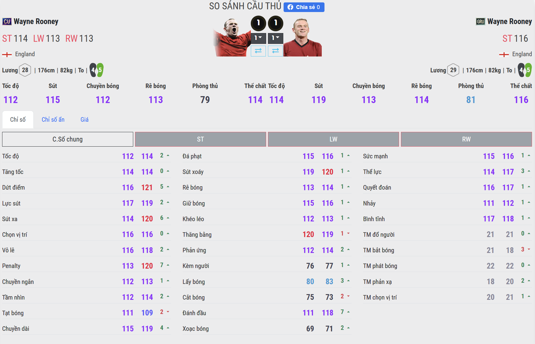 CU nhỉnh hơn về cảm giác bứt tốc và nước rút. Rooney chưa bao giờ là mẫu cầu thủ thuần tốc độ, nhưng phiên bản CU cho cảm giác linh hoạt và thoát pressing tốt hơn, đặc biệt khi được đặt ở vị trí CAM hoặc CF. GRU vẫn ổn trong các pha xâm nhập vòng cấm, nhưng có phần đầm hơn khi cần rê tốc.
