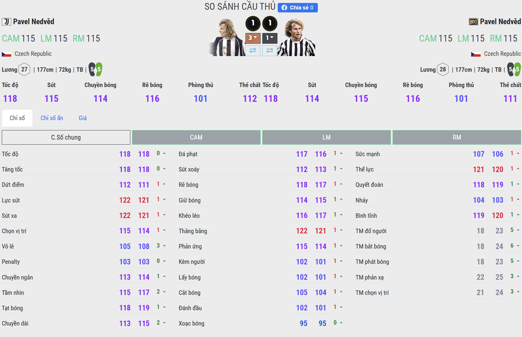 Khả năng tì đè của Nedved Juventus đôi lúc cho cảm giác lì hơn và khó ngã hơn, tuy nhiên về tổng thể thì không có quá nhiều khác biệt trong các tình huống so vai của cả 2 mùa thẻ trong FC Online.