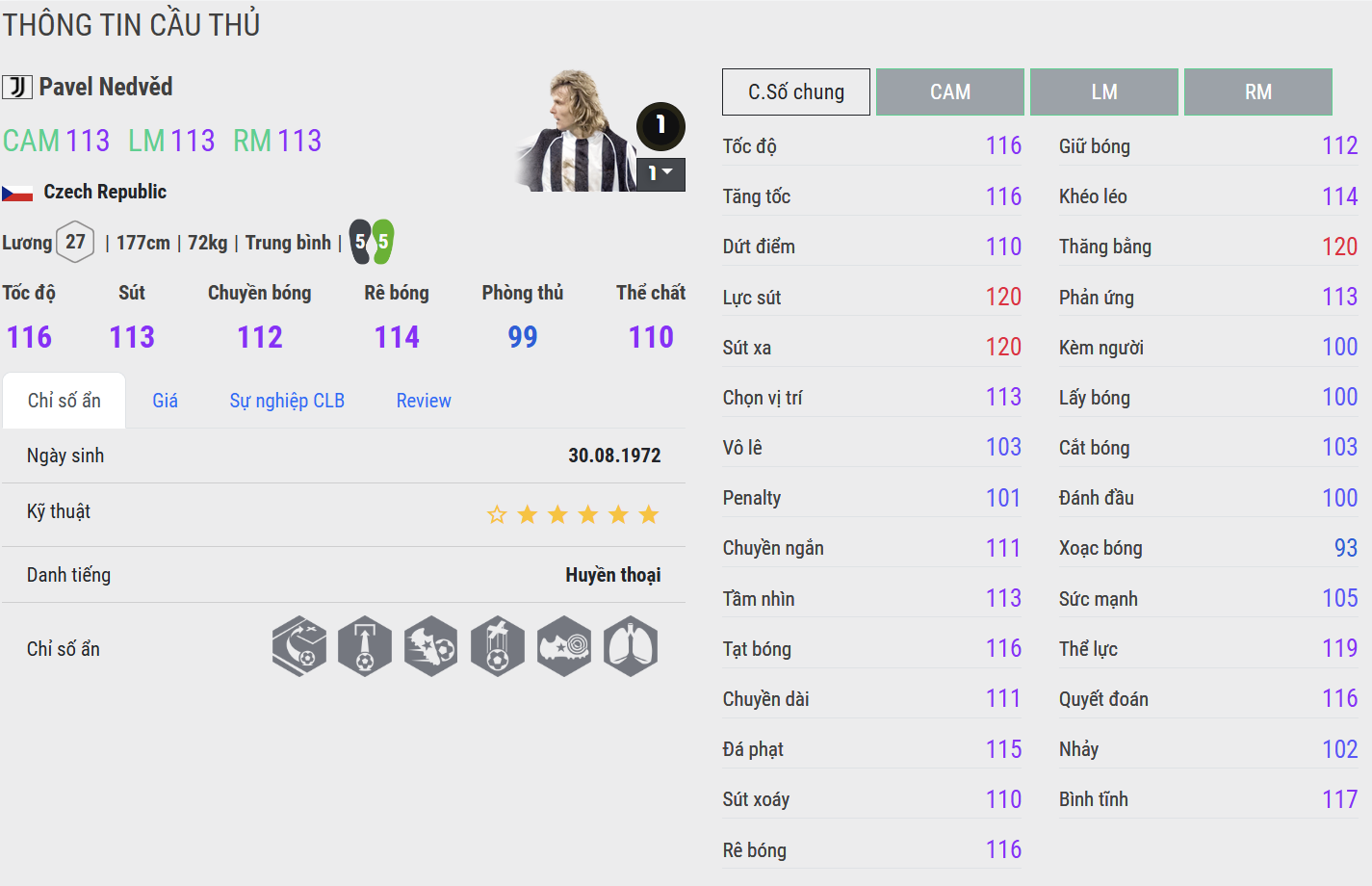 Tốc độ là điểm khá tương đồng của 2 phiên bản Nedved trong game. Cả 2 đều cho thấy khả năng di chuyển linh hoạt cùng kỹ năng bứt tốc nhanh và hiệu quả. Cảm giác bứt tốc với Nedved cho thấy được sự nổi trội rõ nét với kỹ năng HLV đỡ bước 1.