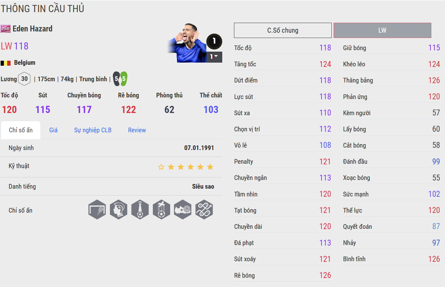 Ở khâu kết thúc, LE thể hiện sự sắc bén với khả năng sút bóng chuẩn xác từ nhiều góc độ, đặc biệt là những cú đặt lòng finesse shot đặc trưng. 25HR cải thiện lực sút và khả năng dứt điểm bằng chân không thuận, giúp Hazard đa dạng hơn khi đối mặt thủ môn.