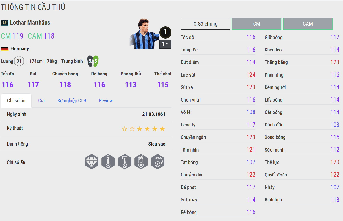 Lothar Matthäus là một trong những huyền thoại vĩ đại nhất của bóng đá Đức và thế giới, được biết đến như biểu tượng của sự toàn diện, bền bỉ và bản lĩnh thép. Sinh năm 1961, Matthäus sở hữu sự nghiệp kéo dài hơn hai thập kỷ, để lại dấu ấn sâu đậm trong màu áo Borussia Mönchengladbach, Bayern Munich, Inter Milan và đặc biệt là đội tuyển quốc gia Đức.