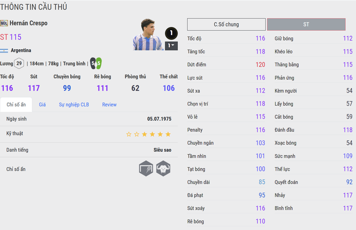 Hernán Crespo là một trong những tiền đạo xuất sắc nhất mà bóng đá Argentina từng sản sinh, nổi bật với khả năng săn bàn nhạy bén và phong cách chơi bóng đầy tinh tế.
