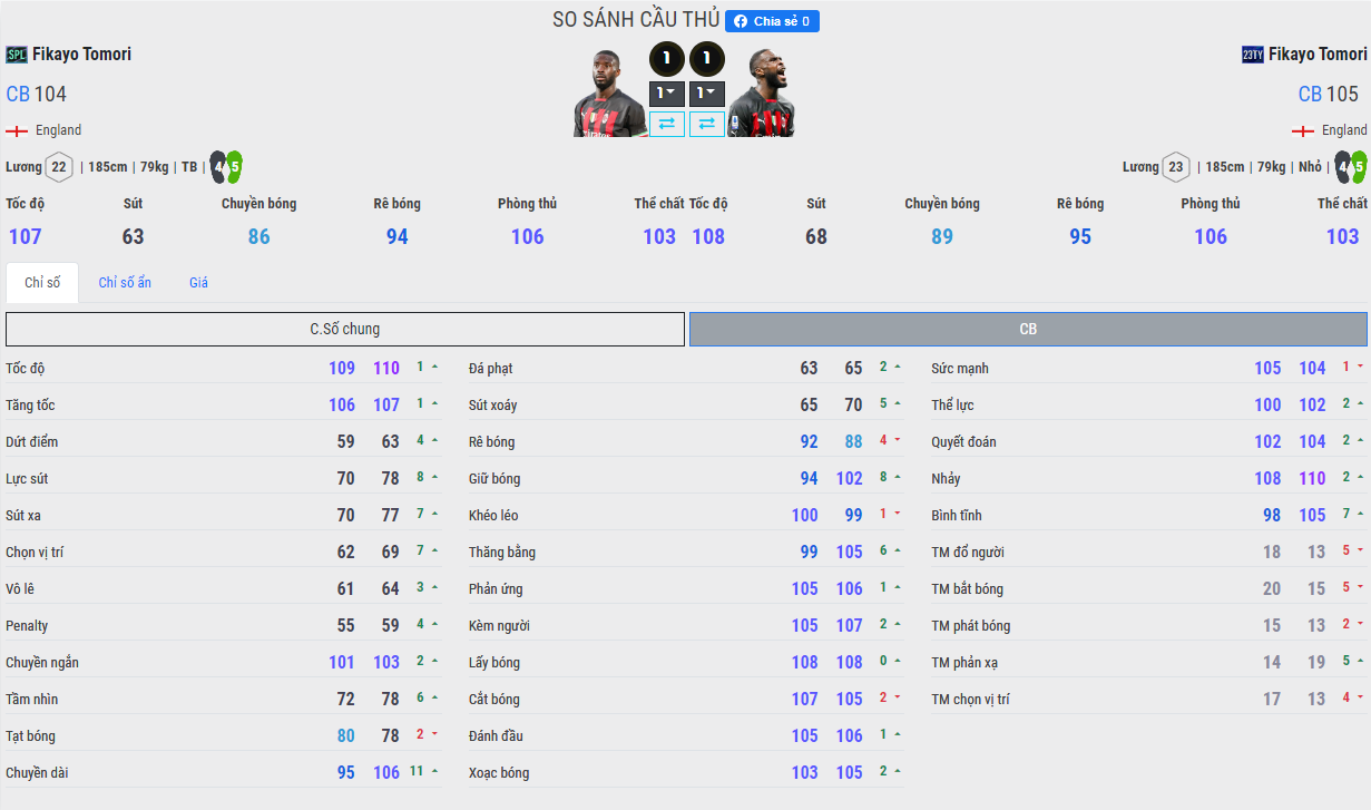 Fikayo Tomori trung vệ gây ấn tượng nhất mùa giải 2021/2022 tại Series A là nhân tố chính giúp cho Ac Milan vô địch sau 11 năm chờ đợi, tuy nhiên việc mùa giải 23TY chỉ nhỉnh hơn có 1 ovr so với mùa giải SPL ( spotlight ) khiến cho nhiều người còn đặt dấu hỏi lớn về mùa giải mới của Tomori, liệu rằng 23TY có hơn SPL hay không ? mời các bạn xem những đánh giá sau.