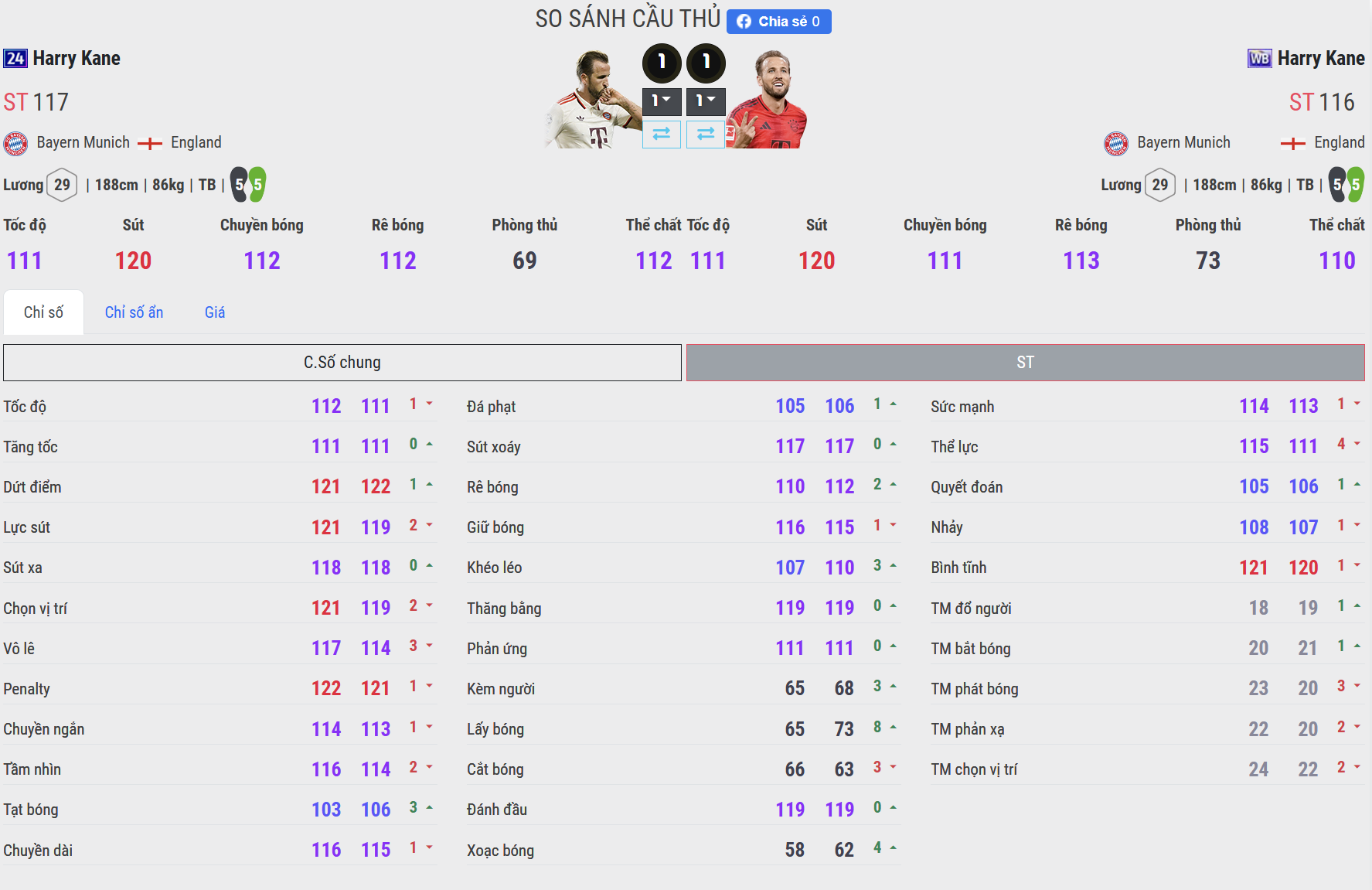So sánh hai mùa giải 25TY và 24TS của H. Kane trong FC Online