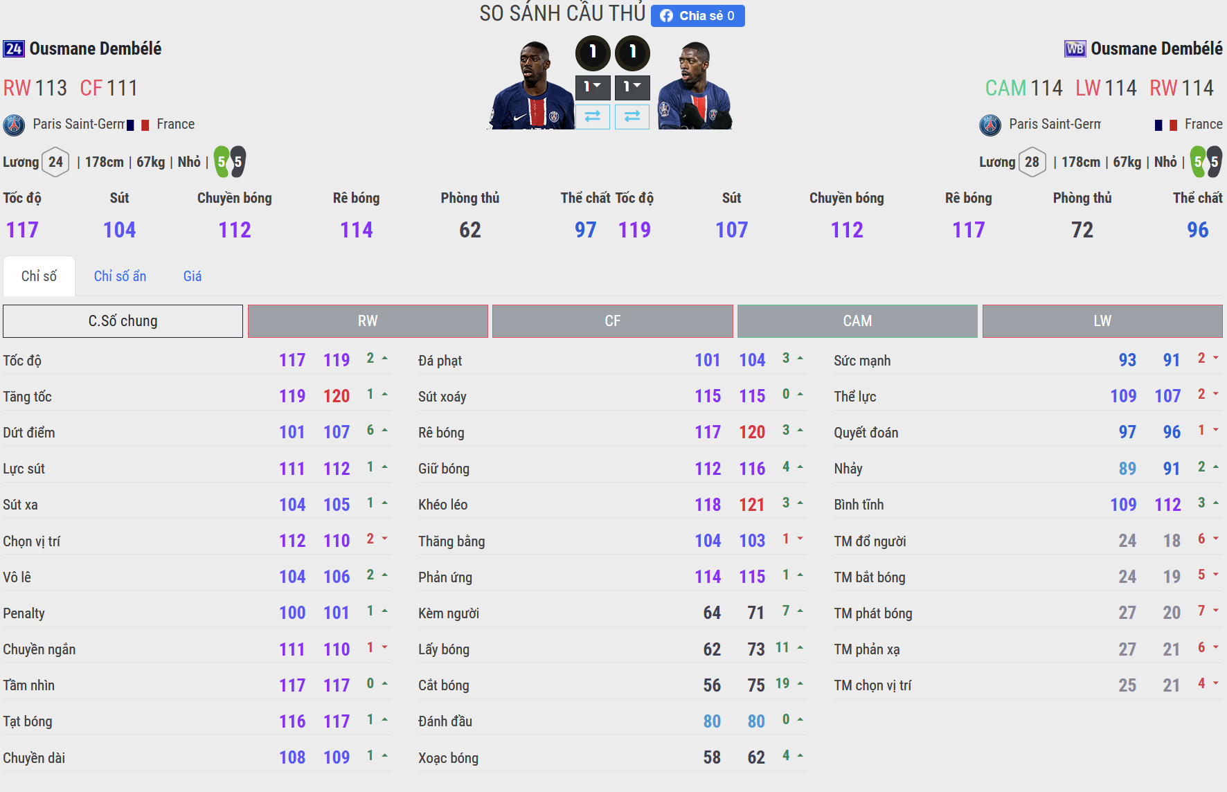 - WB: Đây là mùa mà Dembélé bứt tốc cực khét. Chỉ cần một khoảng trống nhỏ là anh có thể bỏ xa hậu vệ. Khả năng tăng tốc từ 0–100 gần như tức thì, rất khó để đối thủ kịp áp sát.