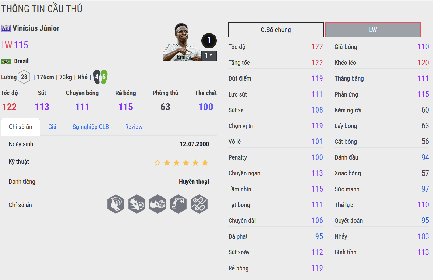 Vinícius Jr – biểu tượng của tốc độ, kỹ thuật và những pha solo giàu cảm xúc bên hành lang trái – luôn là cái tên được săn đón trong FC Online. Giữa hai mùa giải WB (World Best) và 24UCL (UEFA Champions League 2024), người chơi phải cân nhắc kỹ giữa một phiên bản toàn diện, ổn định và một Vinícius mang hơi thở Champions League – bùng nổ, đột biến, nhưng có phần “hoang dã”.