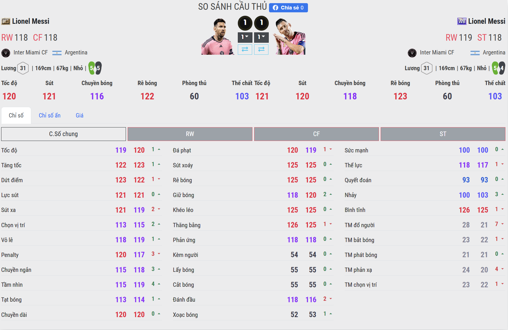 WB vượt trội ở độ chính xác – BLD sáng tạo hơn. Messi WB sở hữu AI chuyền bóng thông minh và tỉ lệ chuyền cực ổn, rất phù hợp với vai trò CAM hoặc tiền vệ sáng tạo. BLD tuy vẫn chuyền tốt, nhưng thiên về những đường chuyền mạo hiểm, đột biến hơn là chuyền an toàn hoặc kiểm soát tuyến giữa.