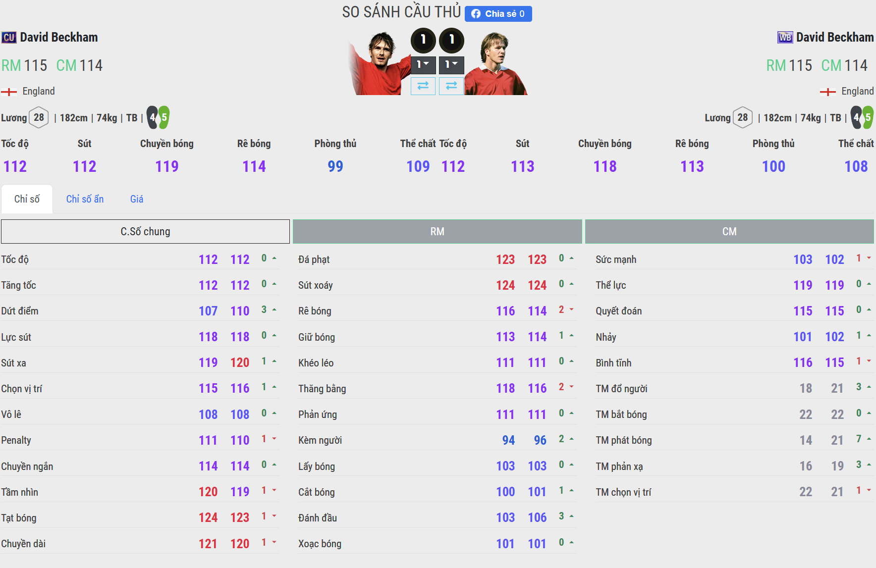 Cả hai đều rất mạnh, WB trội hơn ở độ ổn định và chiều sâu. Beckham WB là một trong những mùa chuyền tốt nhất trong game: QW – tạt – chuyền ngắn – chuyền dài đều ở đẳng cấp cao, đưa bóng chính xác gần như tuyệt đối. CU vẫn chuyền tốt, nhất là trong phối hợp ban bật trung lộ hoặc treo bóng, nhưng độ "sát thương" và tính đột biến không cao bằng WB.