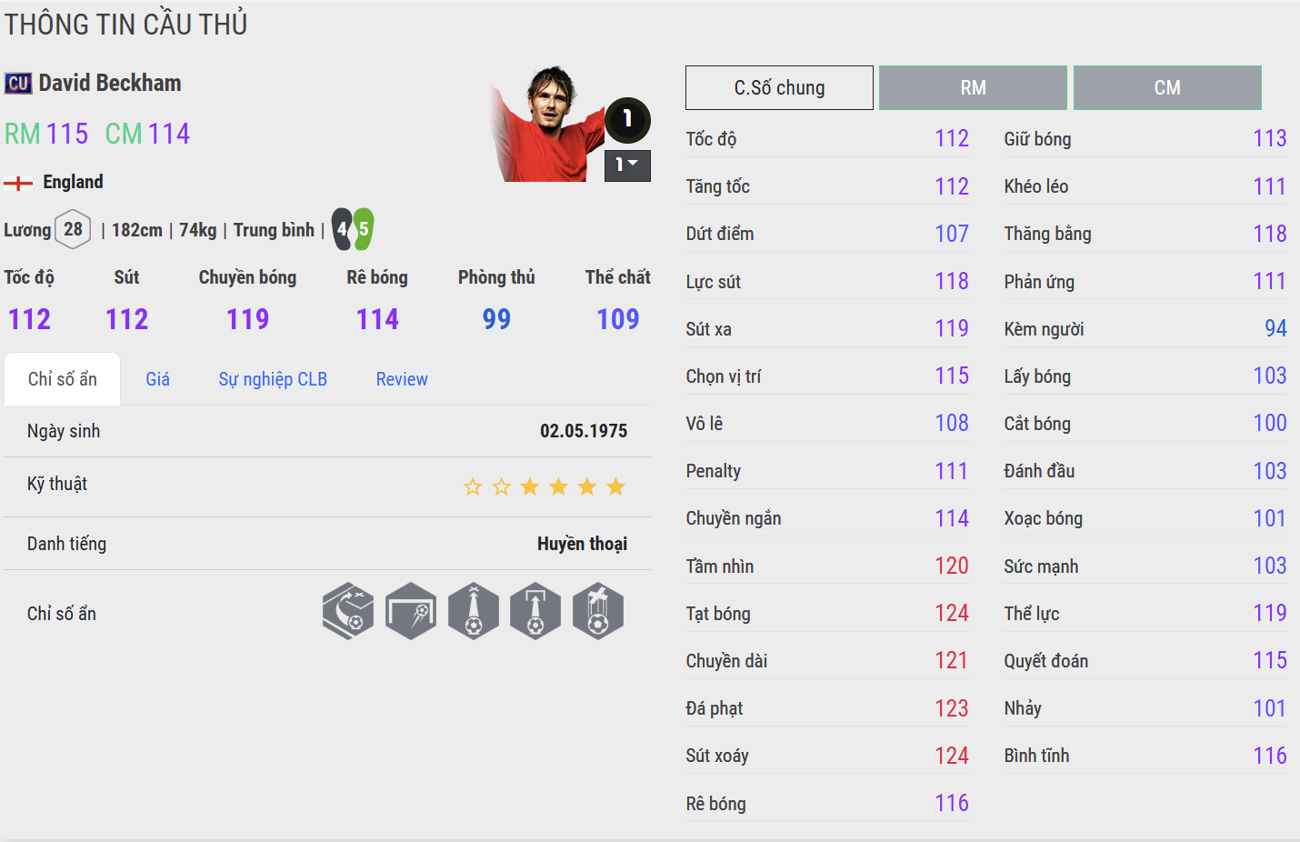 CU nhanh hơn, WB bền bỉ và lên xuống đều. Beckham CU có tốc độ cải thiện rõ rệt so với nhiều mùa cũ, phù hợp với vai trò RM/RW đá bám biên. WB tuy không quá nhanh nhưng chạy rất ổn định, có AI chạy chỗ thông minh, ít bị hụt hơi khi lui về phòng ngự.
