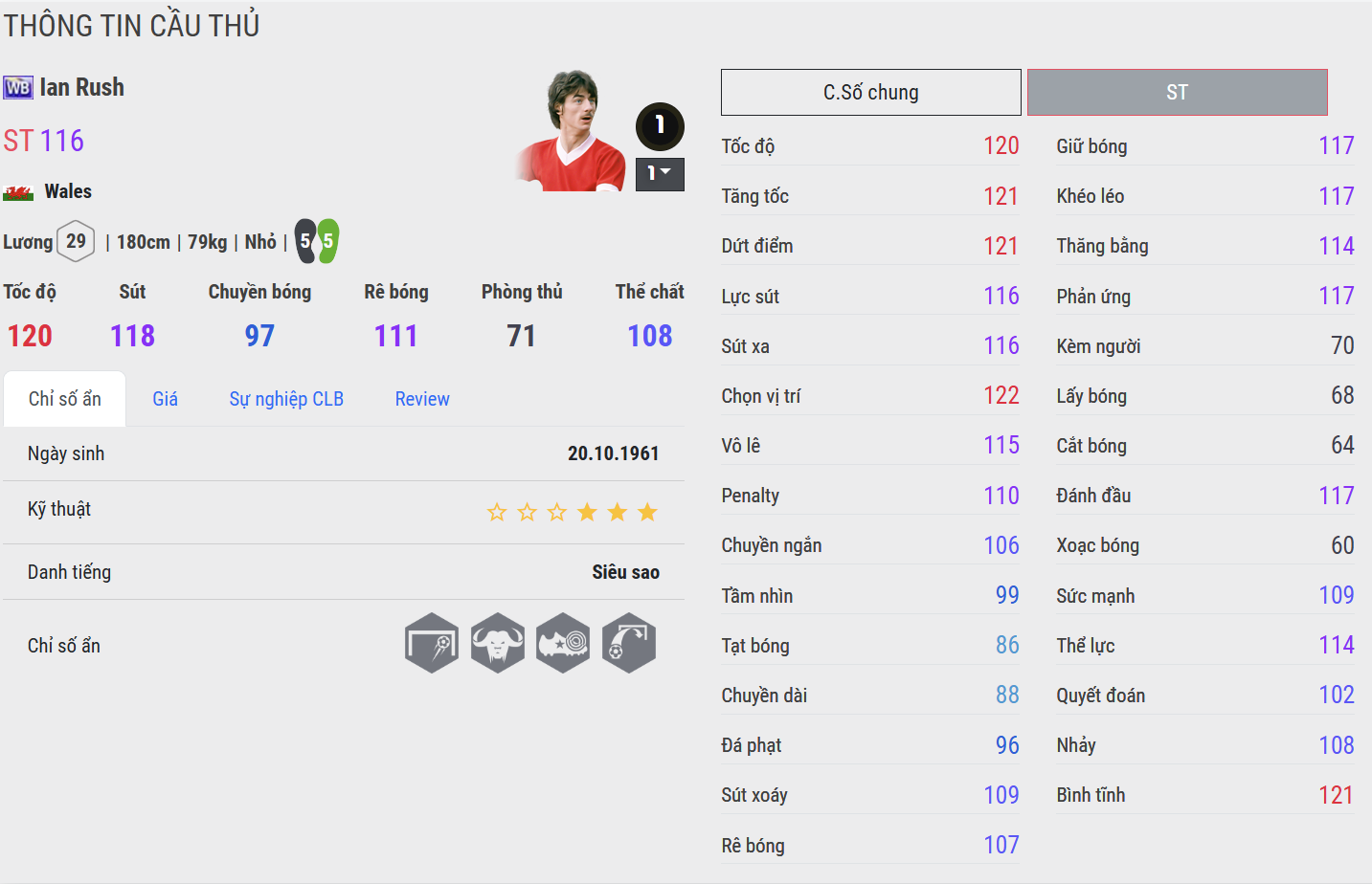 Ian Rush là chân sút huyền thoại đã khắc sâu tên mình vào lịch sử Liverpool và bóng đá xứ Wales bằng bản năng ghi bàn sát thủ cùng phong thái thi đấu khiêm nhường, tận tụy. Sinh năm 1961 tại St Asaph, Rush gia nhập Liverpool năm 1980 và nhanh chóng trở thành tay săn bàn chủ lực của “Lữ đoàn đỏ”.